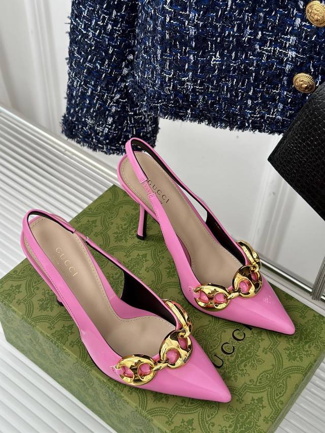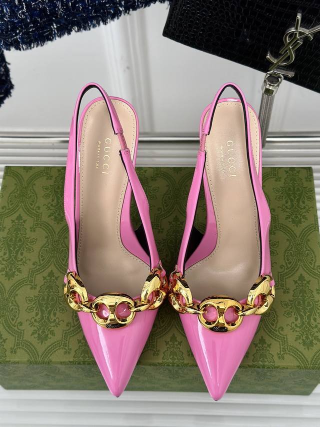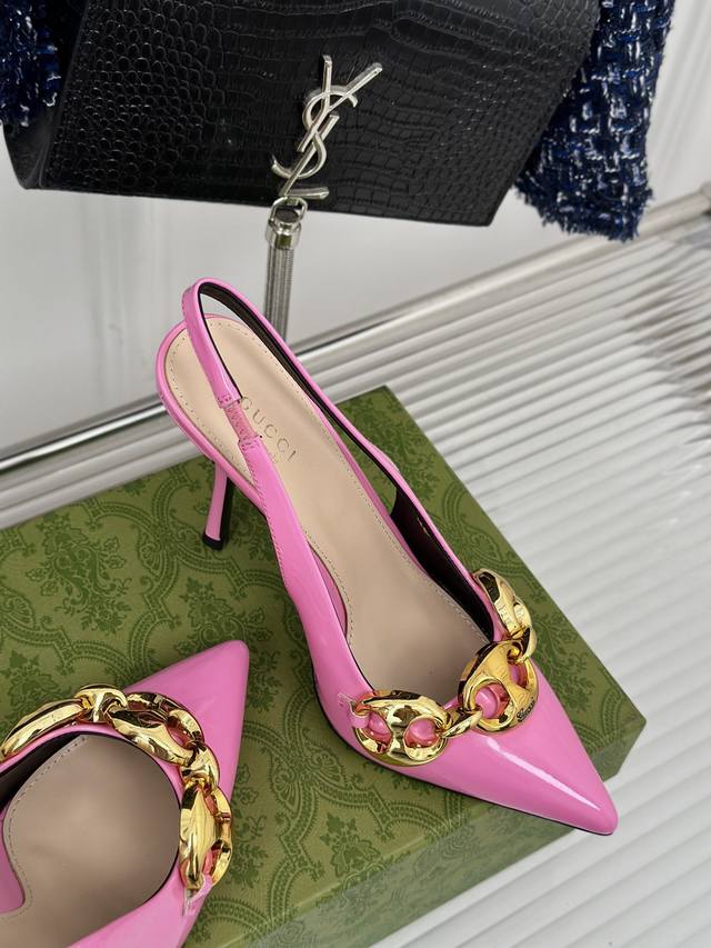 Gucci 春夏最新款 链条细跟高跟鞋 高端版推荐 专柜购买原版一比一打造 所有细节 材料 全部跟你在专柜买到的都一样 鞋面...