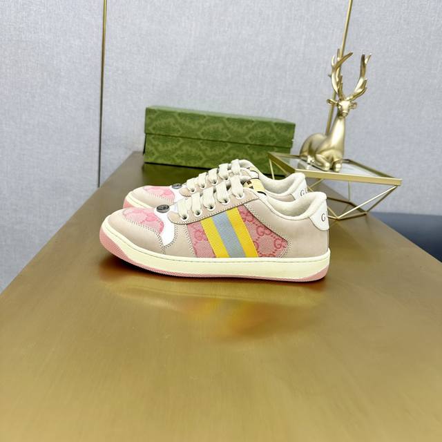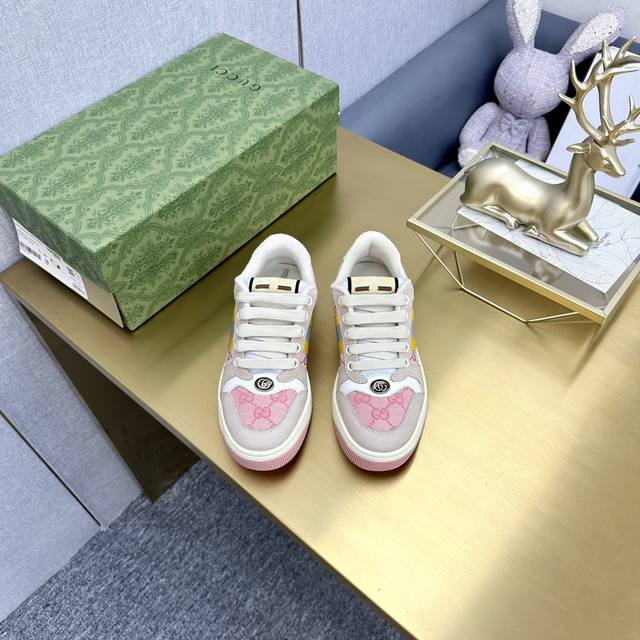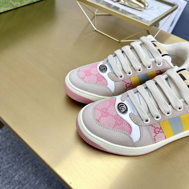 出厂价pp男女码 市场最高版本。 DDD Gucci古驰全新升级后套内里,顶级做旧小脏鞋,Screener 系列饰水晶运动鞋 DDD G小脏鞋镶钻款 蓝色水钻,经典休闲情侣款,复古板鞋做旧G家脏脏鞋,同步专柜更新! DDD ①鞋面增加原版一致的水性涂边工艺市场上的普通油边胶感太强又容易掉!A级头层磨砂皮 带毛孔 对版电脑刺绣双G布,内里高密度毛巾绒。 DDD ②中底板细节上增加了pvc透明小圆标封线,六次开模采用滴珠宝工艺定制双色双G扣,力求做到和原版一样,一对扣子比市面普通扣贵3倍以上。 DDD ③做旧