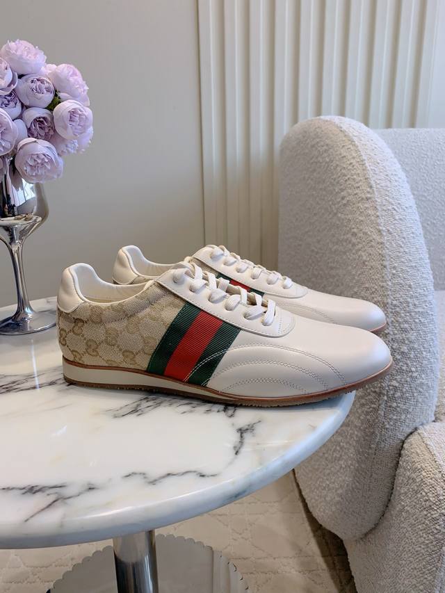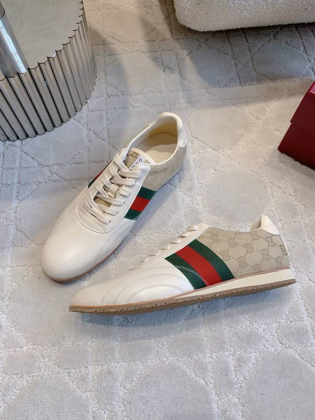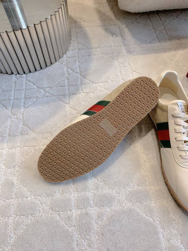 / 出厂价pp 男款 Gucc*新款男士拼色德训鞋休闲鞋 顶级版本 原版购入打版开发 Zp一比一复刻 休闲舒适好穿 鞋面原版小牛皮 内里垫脚羊皮 原版开模大底 尺码