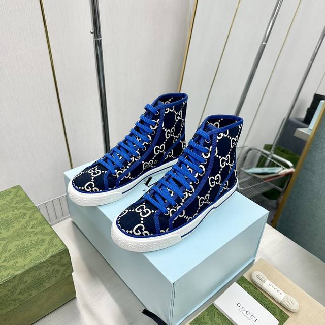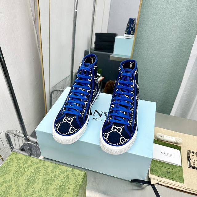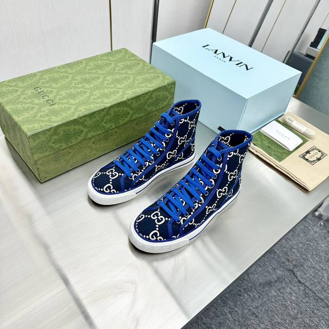 出厂价Pp 顶级版本 高帮靴子女 男 Gucci 古奇 最新款经典款1977低帮双G帆布鞋,原版购入,1:1开发,原版套楦工艺。 尺码:35-45 45定做不退换,先款。。 新版全套包装