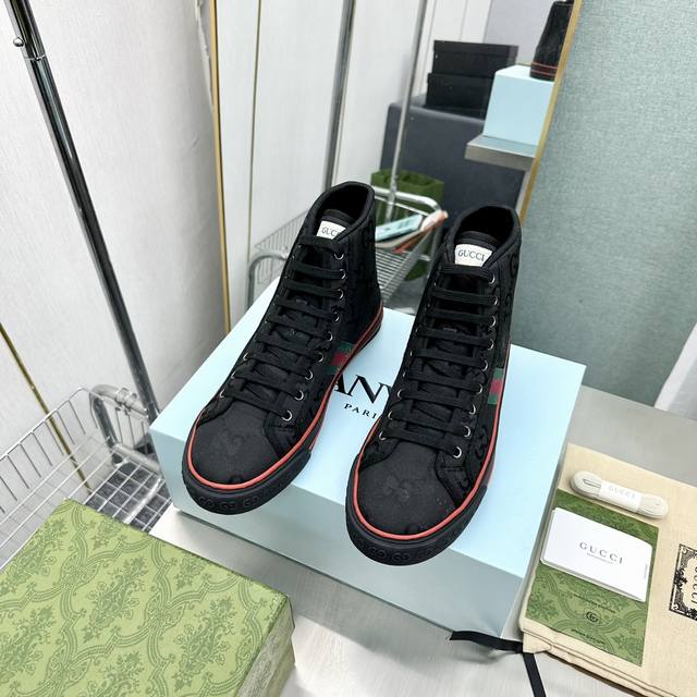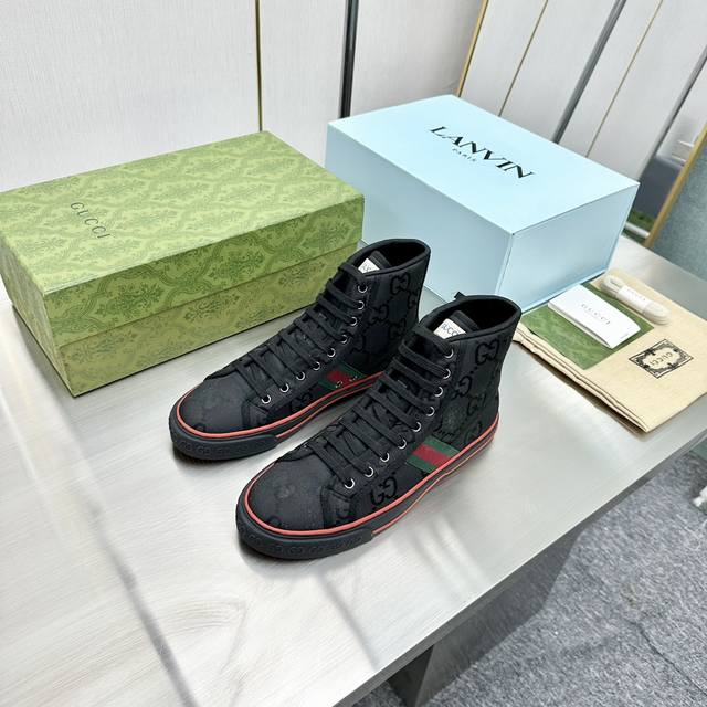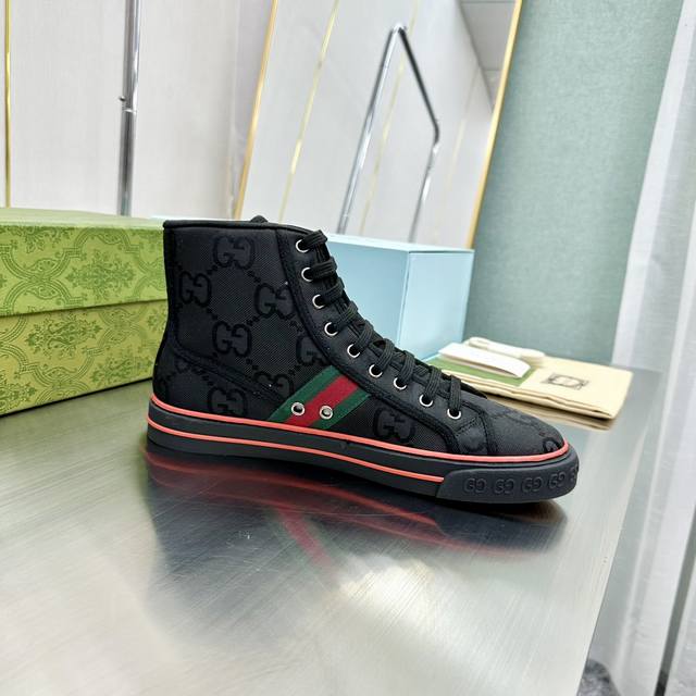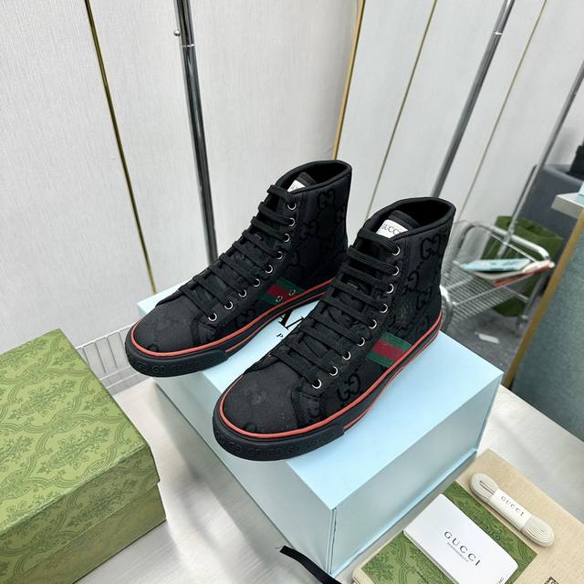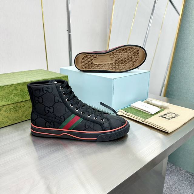 出厂价Pp: 顶级版本 高帮靴子女 男 Gucci 古奇 最新款经典款1977低帮双G帆布鞋,原版购入,1:1开发,原版套楦工艺。 尺码:35-45 45定做不