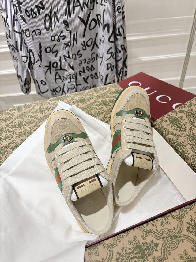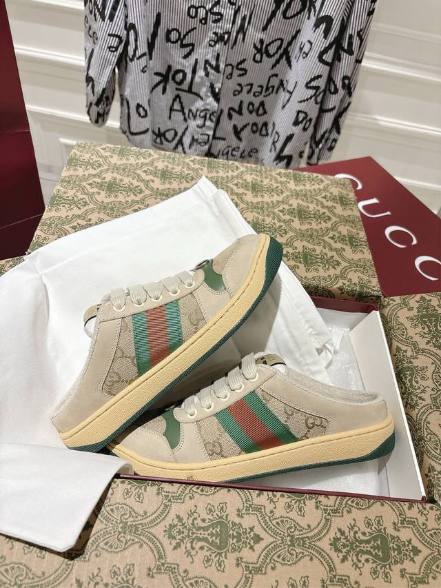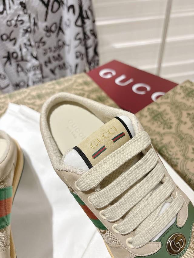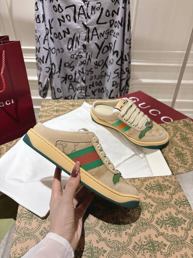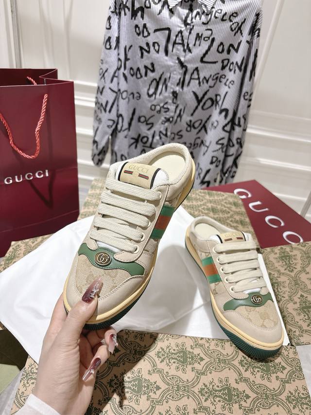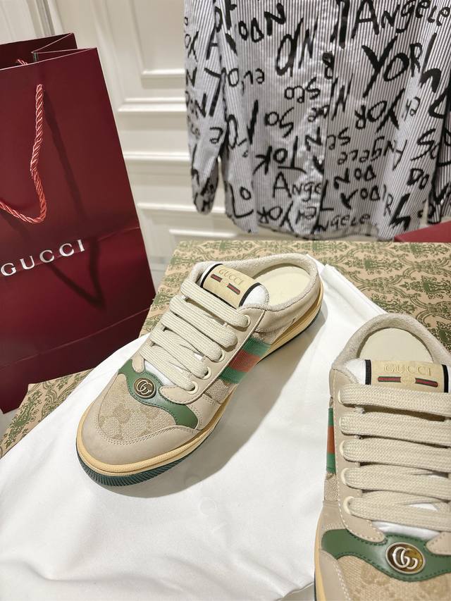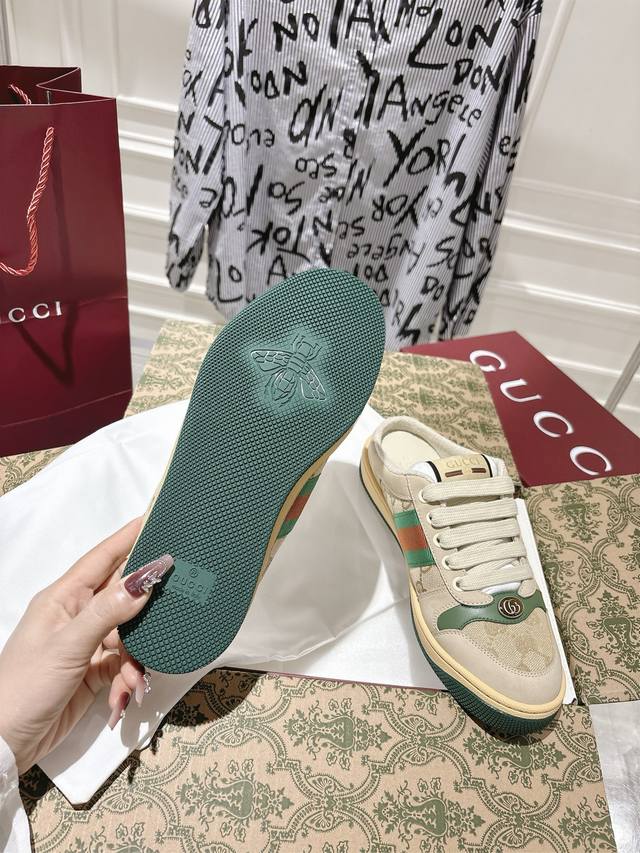 出厂 ,最新升级版 Gucc* Gg Screener系列运动小脏鞋半拖原版套楦工艺采用原版Tpu大底。整鞋都采用原版油边工艺。