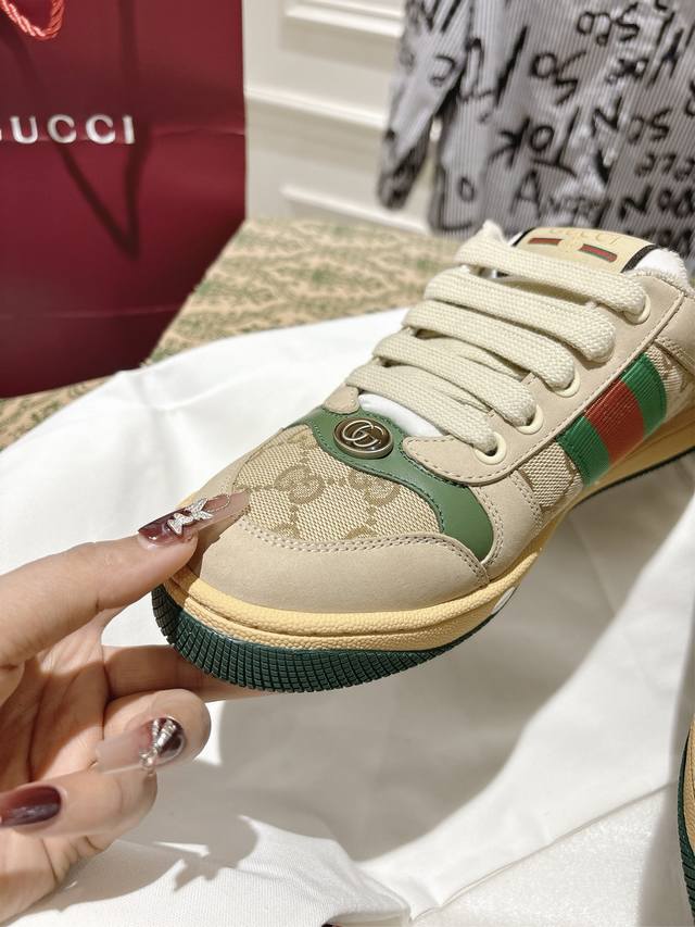 / 出厂 ,最新升级版 Gucc* Gg Screener系列运动小脏鞋半拖原版套楦工艺采用原版Tpu大底。整鞋都采用原版油边工艺。 情侣码35-45 最新红色包装