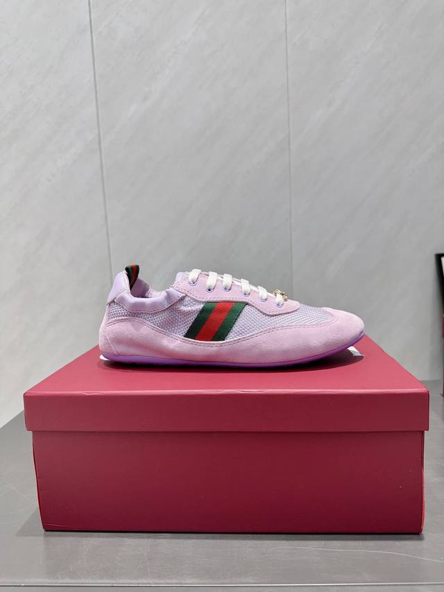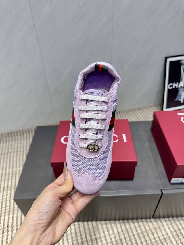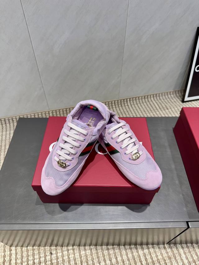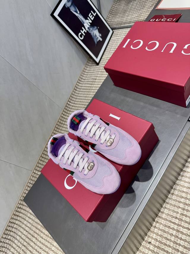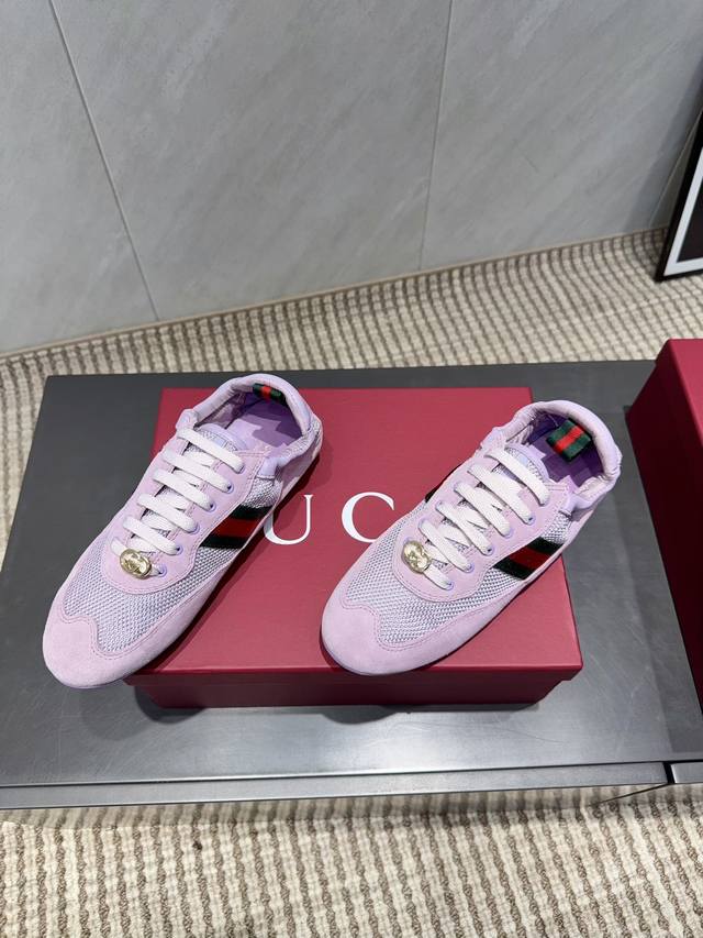 / 出厂: 独家顶级版本 圆头拼色休闲鞋 G家古驰最新网面拼色休闲鞋,Gg古奇系列休闲乐福休闲走秀款 Zp开发纯原版本 金属双G水晶圆柱形标 Gucc原版纹织带 鞋