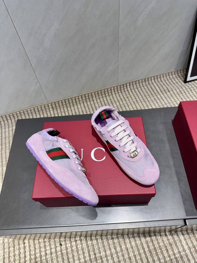 出厂: 独家顶级版本 圆头拼色休闲鞋 G家古驰最新网面拼色休闲鞋,Gg古奇系列休闲乐福休闲走秀款 Zp开发纯原版本 金属双G水晶圆柱形标 Gucc原版纹织带 鞋