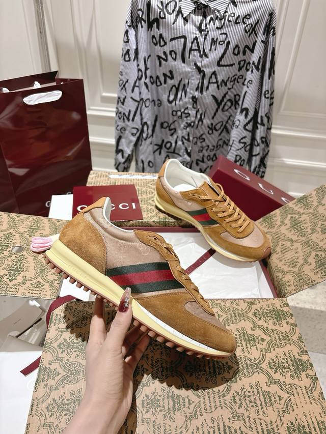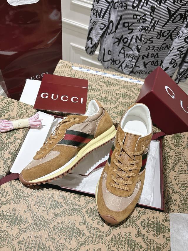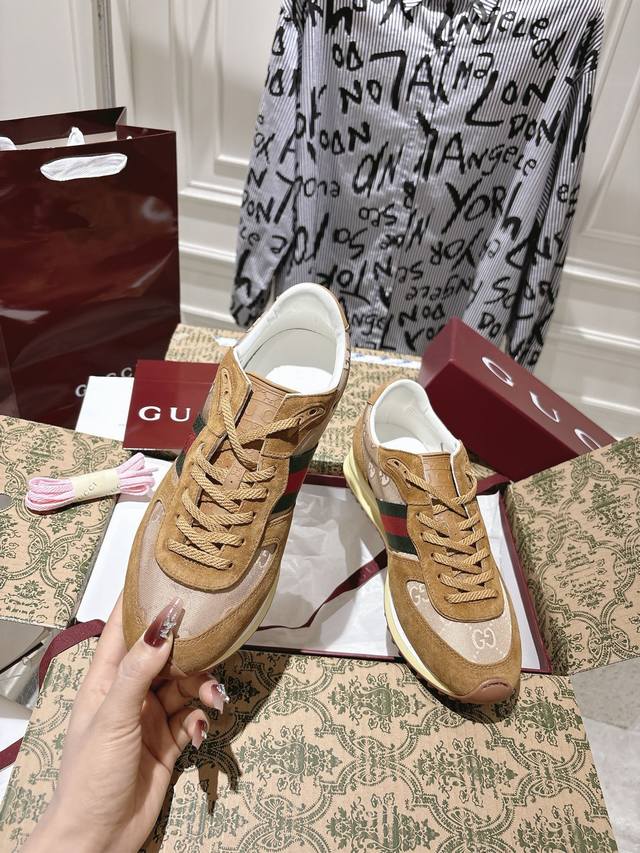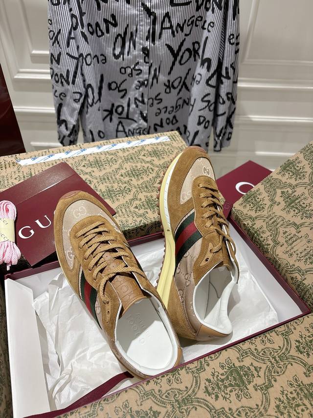 / 出厂 配全套飞机盒 Gucci25S春夏系列新款情侣运动鞋 整双鞋子采购Zp开发打造,全部定制材料,独家开模大底,细节全部对版出货,连包装也做到跟正品一样。码数