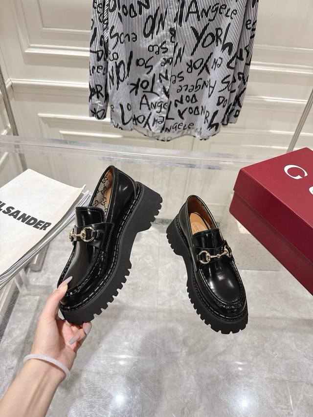 出厂 Gucc60秋冬新款马衔扣英伦风一脚蹬 厚底乐福鞋 作为品牌对马术本源的致敬之作,马衔扣历经岁月洗礼之后,将厚重历史底蕴和现代时尚流行融合形成一体 DDD 原版一致进口牛皮面+羊皮内里,搭配G家标志性的铜制马衔扣 原版开发的橡胶高韧性超轻大底 大底高度5Cm DDD 码数:35-40 DDD