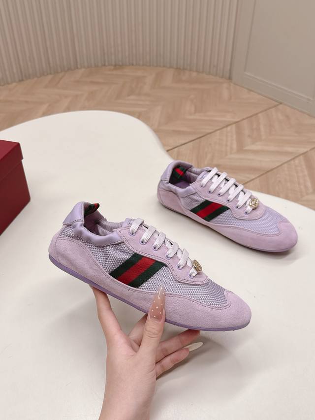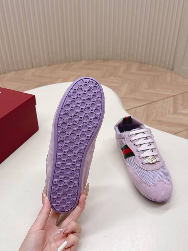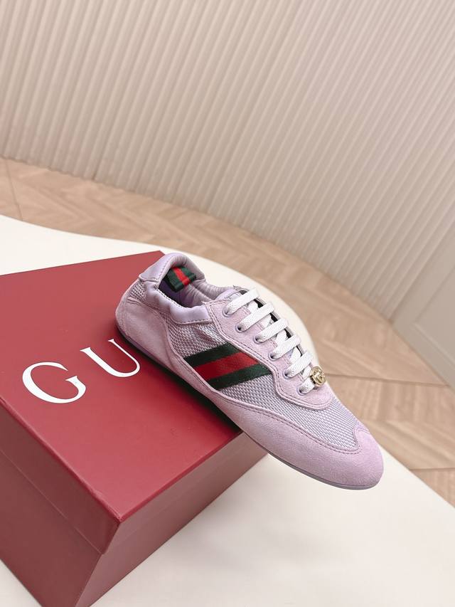 / 出 Gucci Shift 新款 复古德训鞋运动鞋 经典红绿织带一秒吸睛,层次感非常强,超轻薄底:超火的薄底鞋风潮,上脚贴地,走路像踩在云上一样舒服网面+麂皮的