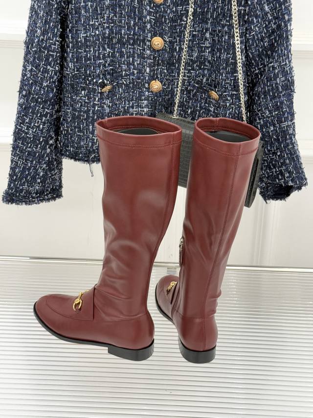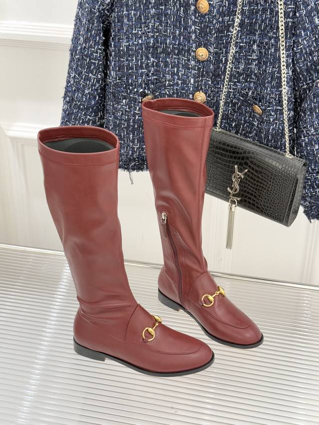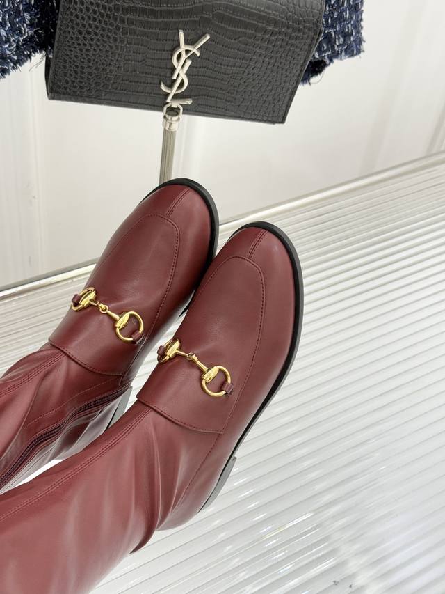 厂价 DDD Gucci 古驰经典双G马衔扣复古乐福弹力靴 DDD 当百年马术基因邂逅现代穿着哲学 DDD 这款弹力靴便有了跨越时光的魅力 DDD 标志性马衔扣以浅金色调雕琢 DDD 既是品牌起源的优雅注脚 DDD 也为鞋身注入低调贵气 DDD 呼应着马术运动的经典与力量 。 DDD 鞋面甄选柔韧弹力皮革 DDD 随双足曲线灵活贴合 DDD 靴口的松紧镶饰消解了束缚感 DDD 让穿脱与行走都成为自在享受 。 DDD 延续乐福鞋的复古轮廓 DDD 搭配利落短靴版型 DDD 皮革鞋底承载着意大利手工的扎实质感
