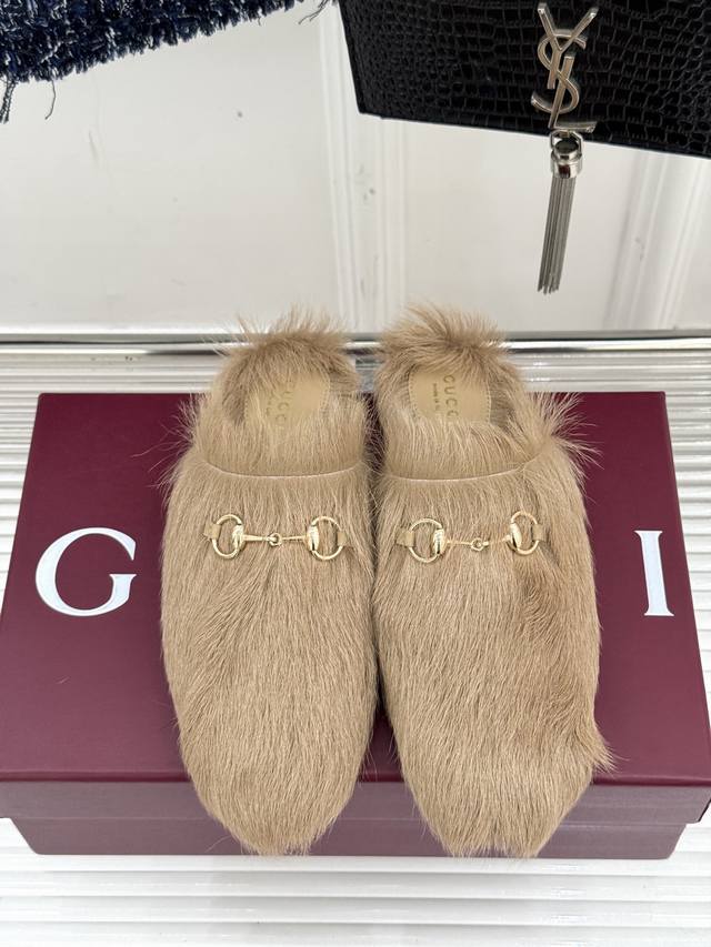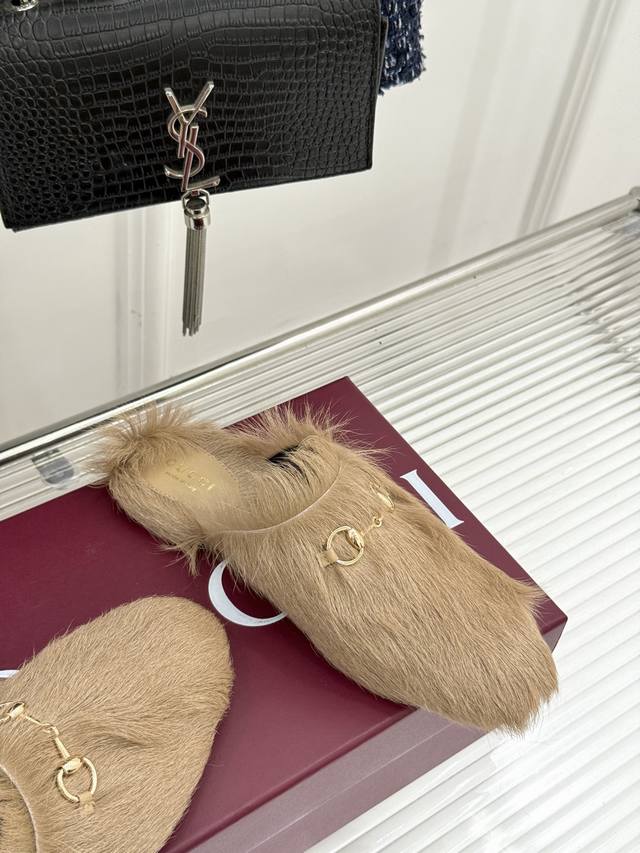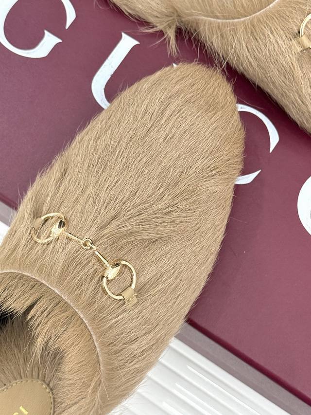 厂价 Gucci 古驰25Wf新品马衔扣穆勒拖毛毛拖 这双毛毛拖是慵懒与奢华的完美碰撞 穿上瞬间松弛感与高级感并存的穿搭哲学。 标志性的马衔扣金属配件 是G家百