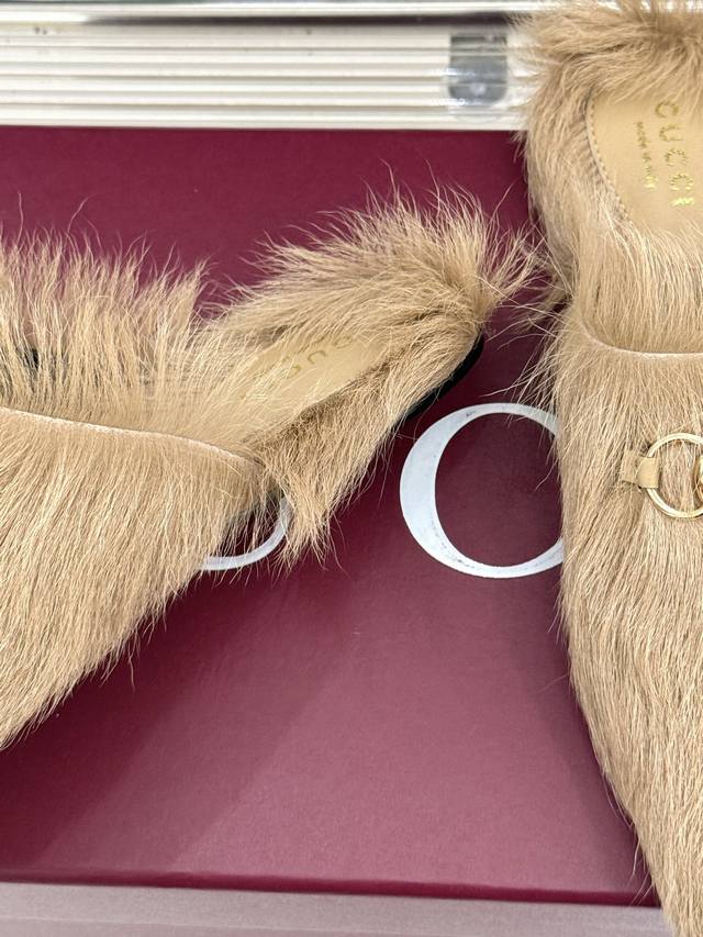 厂价 Gucci 古驰25Wf新品马衔扣穆勒拖毛毛拖 这双毛毛拖是慵懒与奢华的完美碰撞 穿上瞬间松弛感与高级感并存的穿搭哲学。 标志性的马衔扣金属配件 是G家百年经典的无声宣言 复古金调自带优雅气场 让每一次落脚都充满品牌辨识度。 蓬松柔软的毛毛鞋面 如同裹住双脚的云朵 触感细腻亲肤 既保留了穆勒拖的随性自在 又添了份冬日专属的温暖软糯 无后跟的穆勒设计 穿脱超便捷 配一条高腰牛仔裤 是率性的美式复古风 搭一条长裙 就是慵懒贵气的富家千金 让日常穿搭轻松跳出平庸 尽显独特品味。 材质采用原版定制托斯卡纳羊
