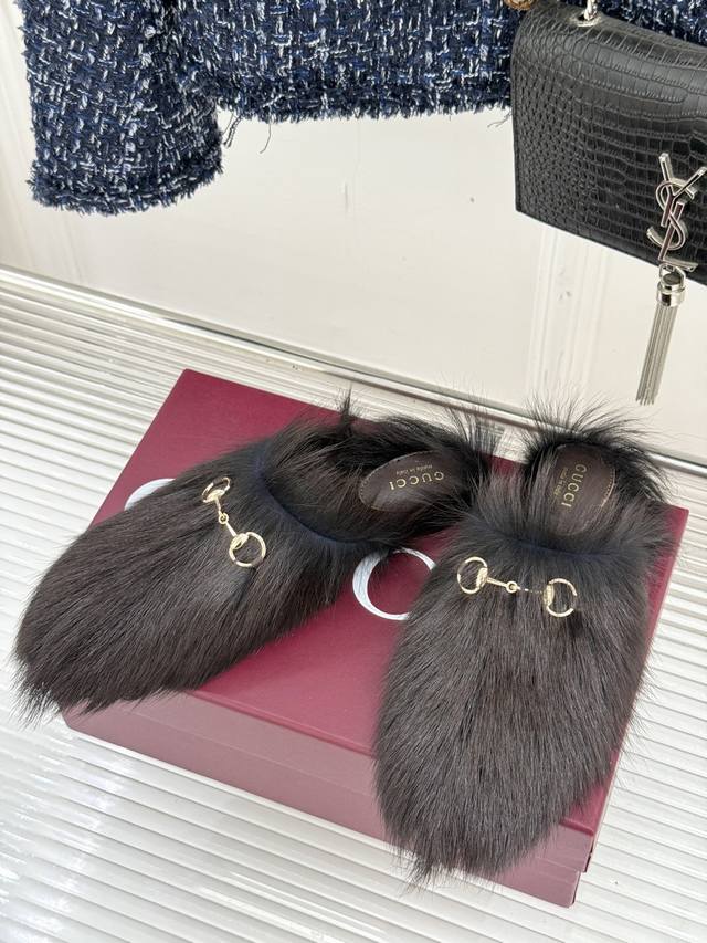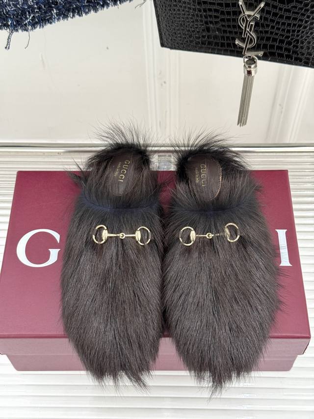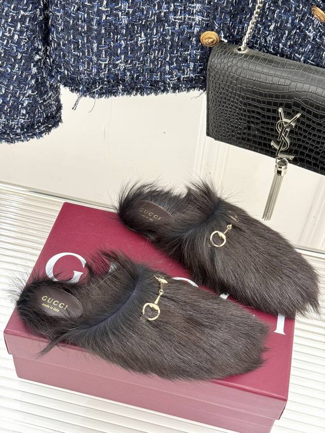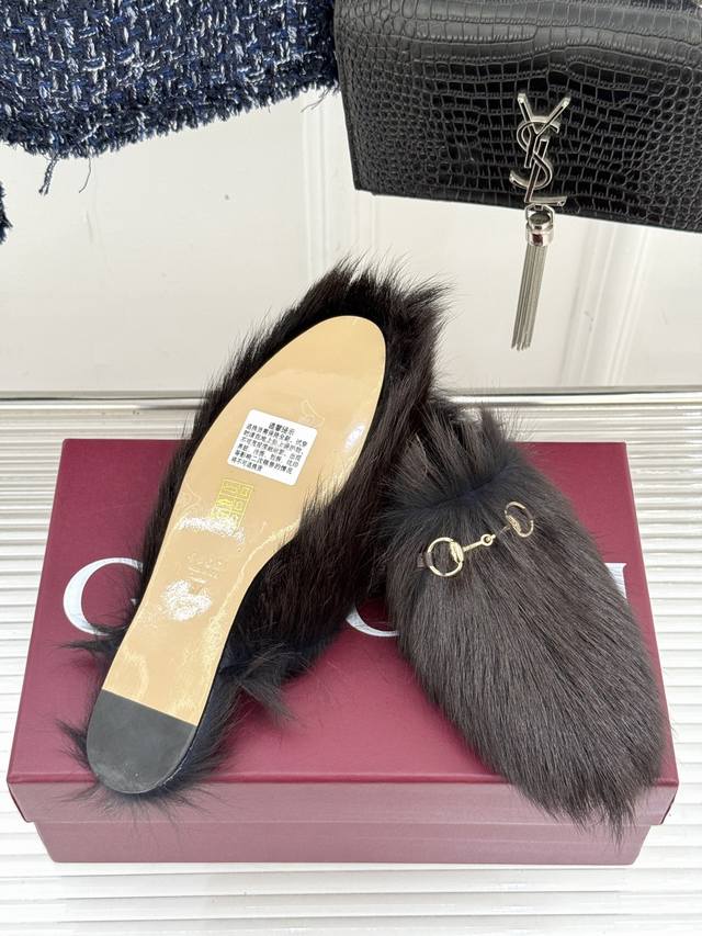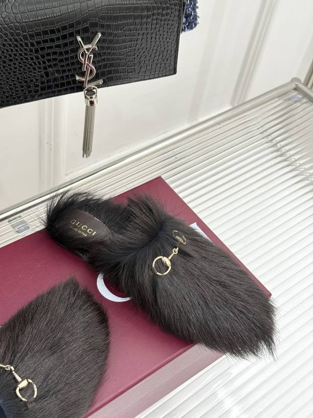 厂价 Gucci 古驰25Wf新品马衔扣穆勒拖毛毛拖 这双毛毛拖是慵懒与奢华的完美碰撞 穿上瞬间松弛感与高级感并存的穿搭哲学。 标志性的马衔扣金属配件 是G家百