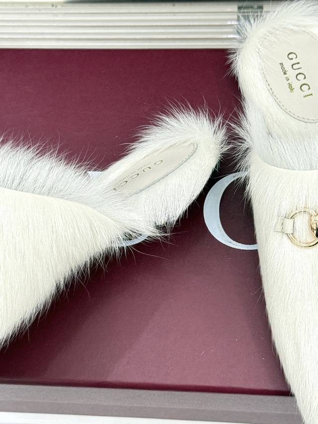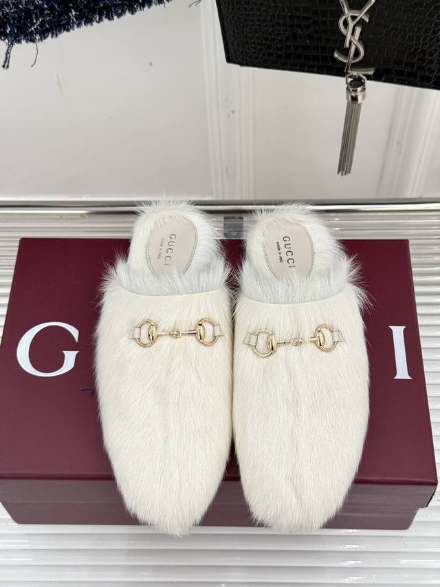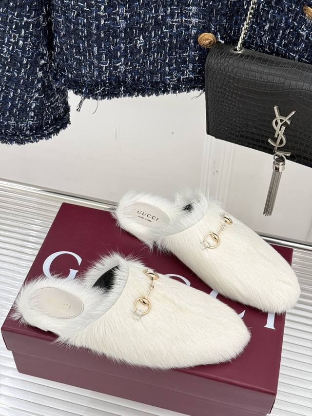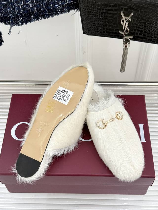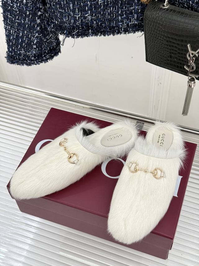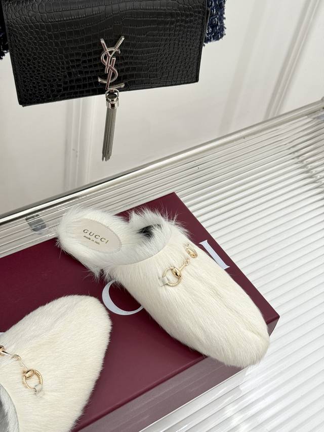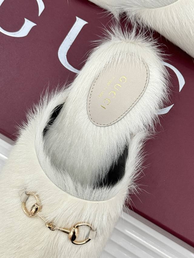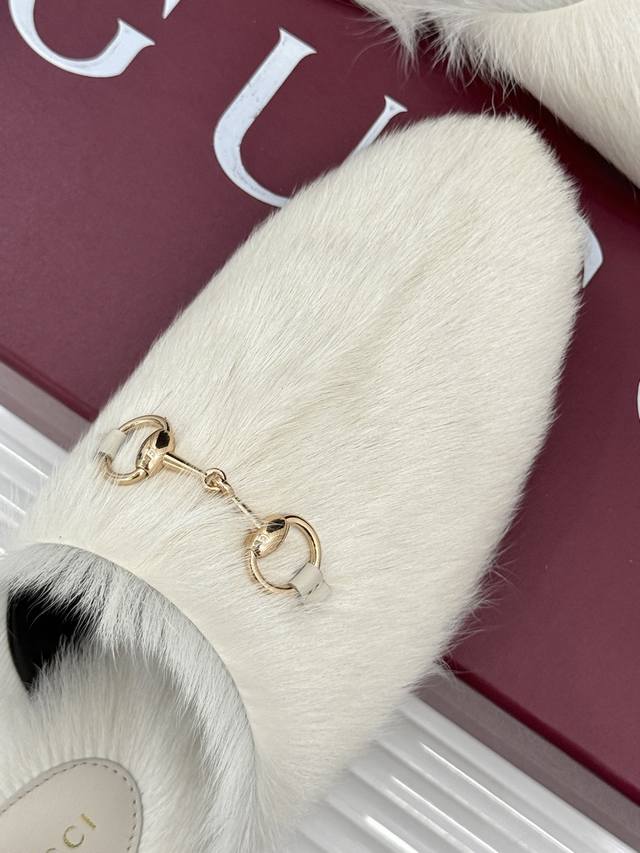 厂价 Gucci 古驰25Wf新品马衔扣穆勒拖毛毛拖 这双毛毛拖是慵懒与奢华的完美碰撞 穿上瞬间松弛感与高级感并存的穿搭哲学。 标志性的马衔扣金属配件 是G家百