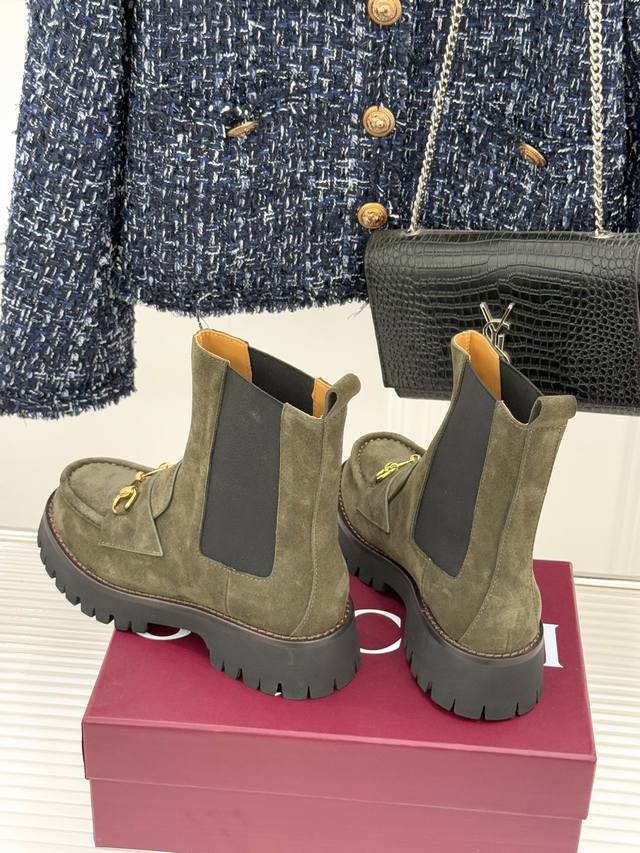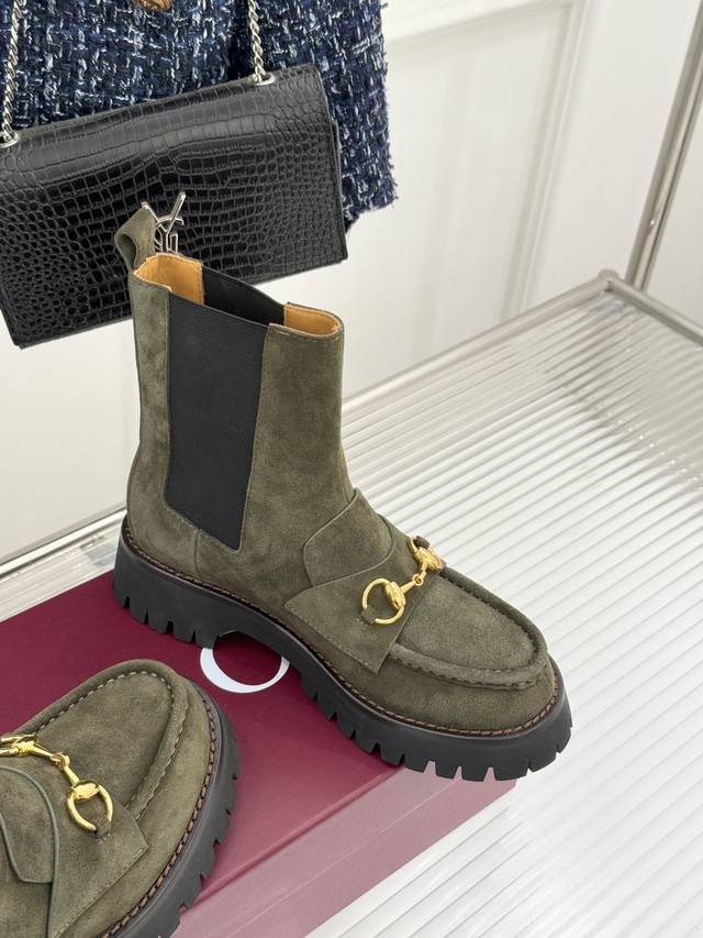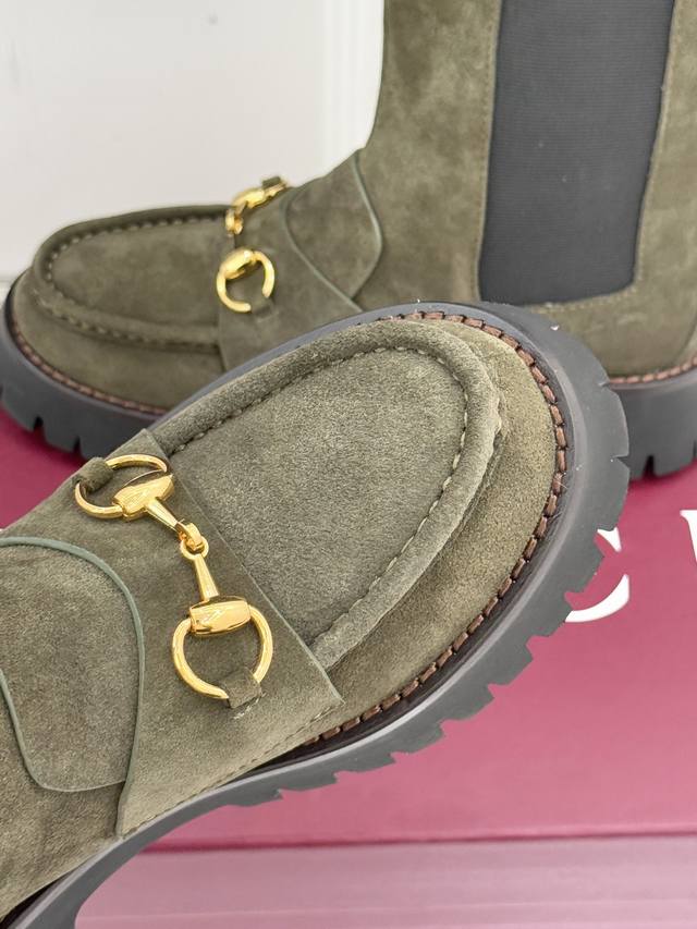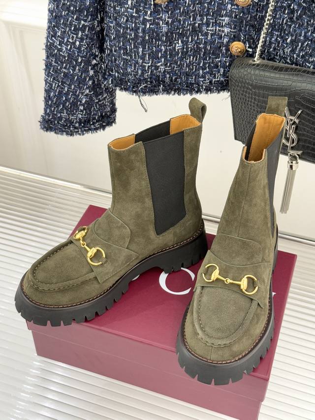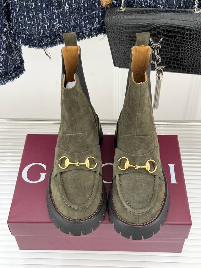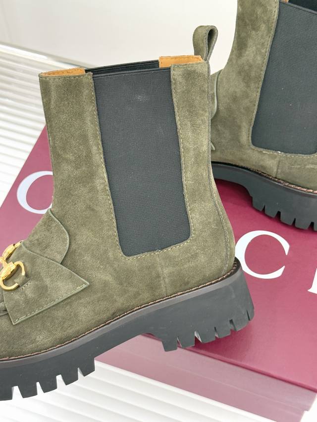 厂价 DDD Gucci 古驰25Wf秋冬新品马衔扣 DDD 厚底切尔西短靴 DDD 标志性马衔扣以浅金色调闪耀鞋面 DDD 如同一匹骏马 在时尚的草原上肆意驰骋 DDD 每一步都踏出独特的优雅与个性。 DDD 乐福鞋廓形与切尔西短靴的融合 DDD 是复古与现代的激情相拥 重塑时尚边界。 DDD 3厘米的厚底设计 是增高显瘦的秘密武器。 DDD 橡胶沟纹鞋底 抓地稳固 DDD 无论是漫步在繁华都市的街头 DDD 还是穿梭于崎岖的石板小路 DDD 都能稳如磐石 自信满满。 DDD 穿上它 你就是时尚的主宰者