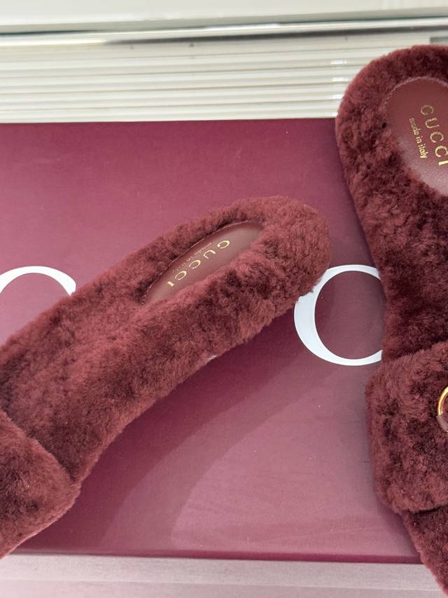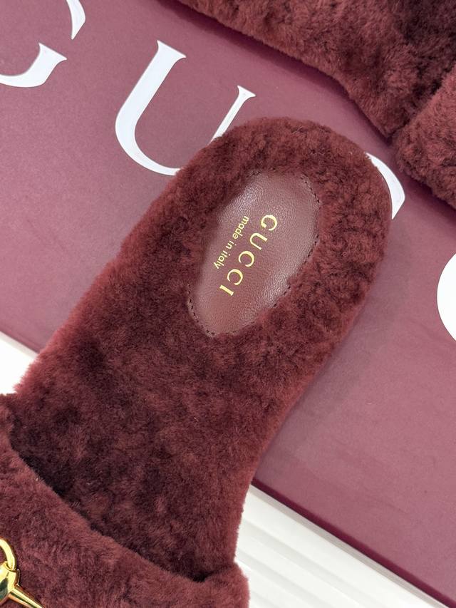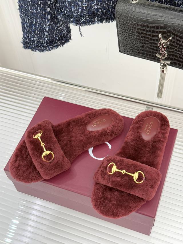 厂价 DDD Gucci 古驰25Wf秋冬马衔扣 DDD 一字带平底毛拖 DDD 承续品牌百年马术基因 DDD 浅金色马衔扣金属件缀于鞋面 DDD 利落勾勒一字带线条 DDD 既是G家标志性符号的鲜活演绎 DDD 更藏着复古雅致的格调底蕴 DDD 甄选细腻丰盈羊毛材质 DDD 经多道工艺精细处理 DDD 上脚便裹住脚踝暖意 DDD 兼顾透气属性与保暖性能 DDD 秋冬穿搭无惧凉意侵袭 DDD 每一步都似陷柔软云朵。 DDD 既是秋冬保暖刚需单品 DDD 更是彰显品味的穿搭利器 DDD 踩上即是质感与舒适的