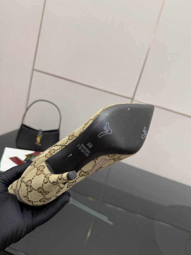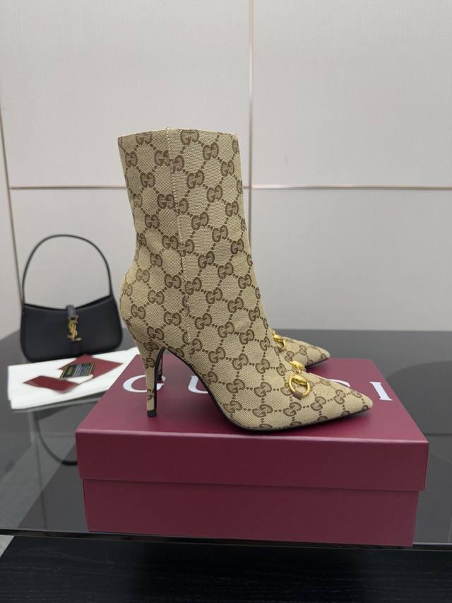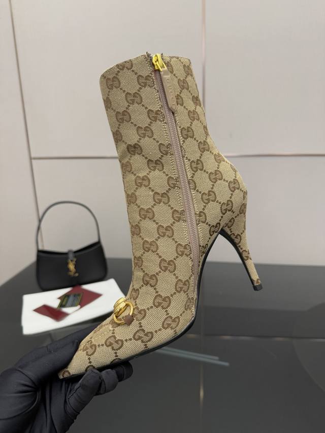 / 厂价P皮面 布面330 Gucci 经典爆款秋冬尖头链条高跟短靴! 今年最不能错过的一双靴子!整体楦型流畅秀气,精致百搭又不失时髦感谁还没有冲啊 面料采用进口小