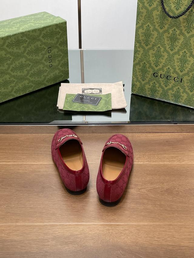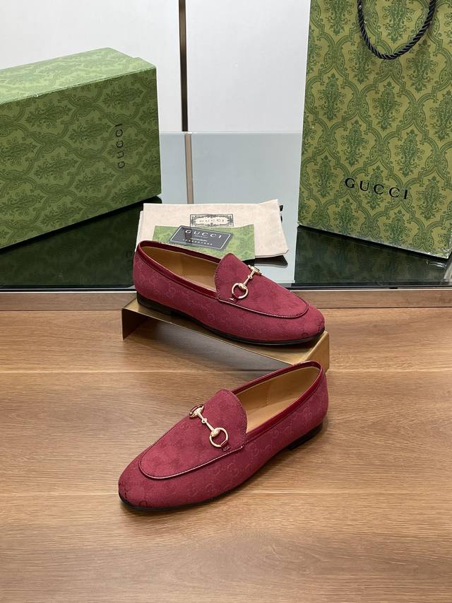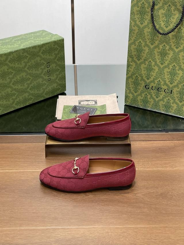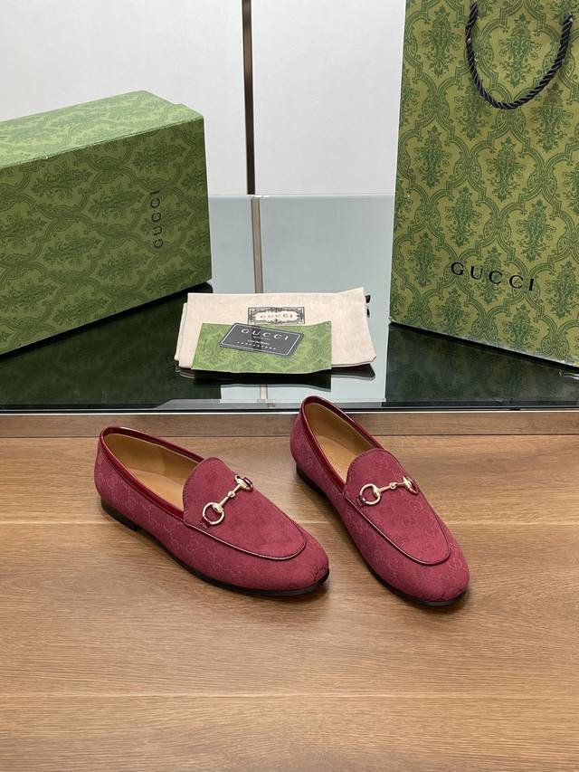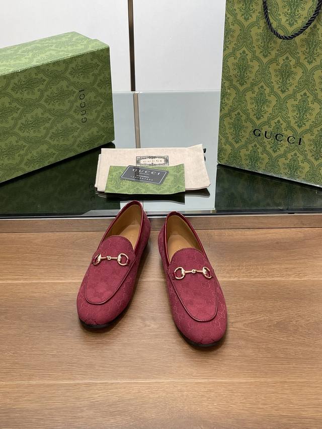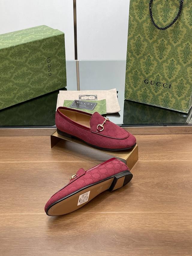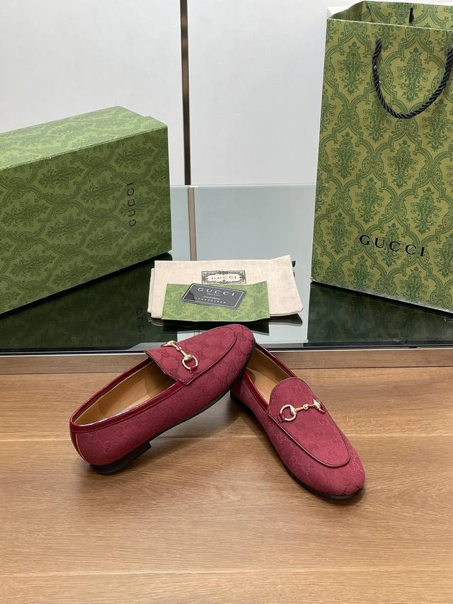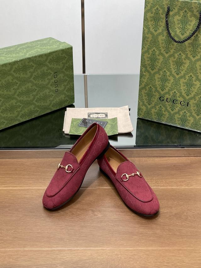 古奇早秋新款Gucci 安可拉酒红G G刺绣新色Princetown系列乐福单鞋 顶级品质 最高版慕勒鞋
