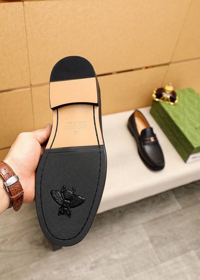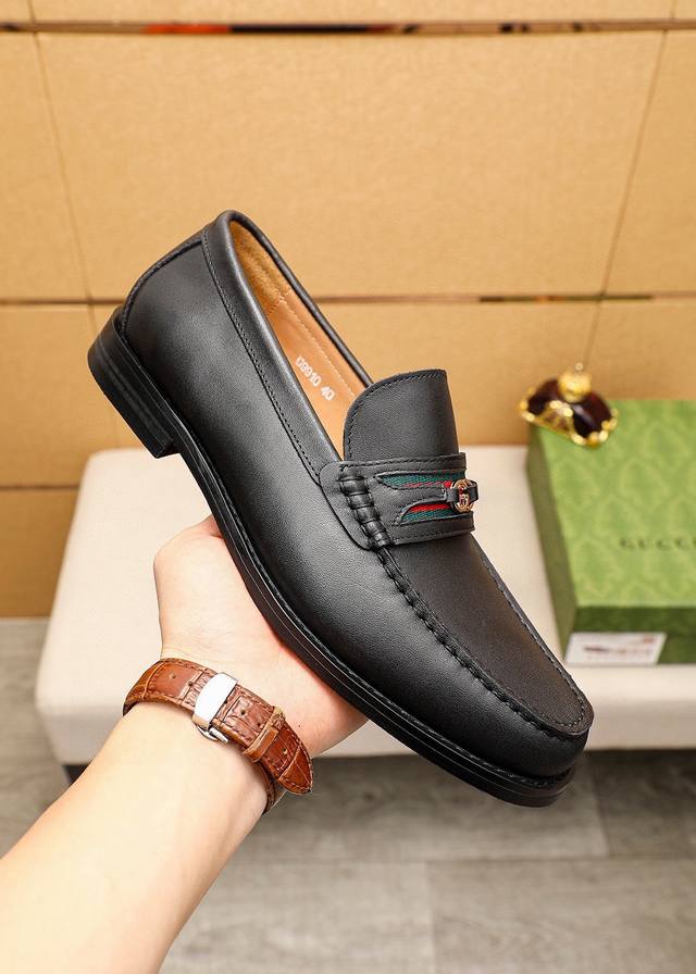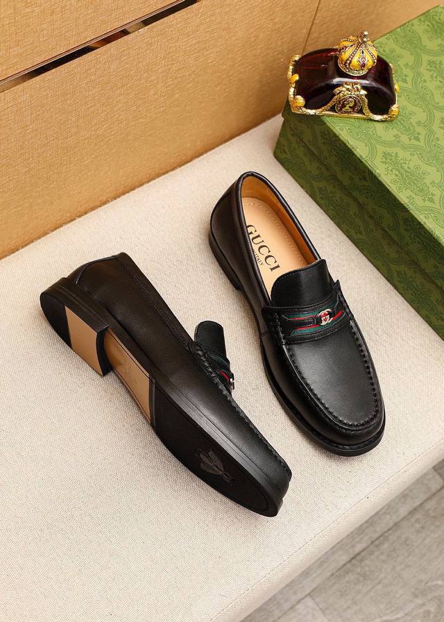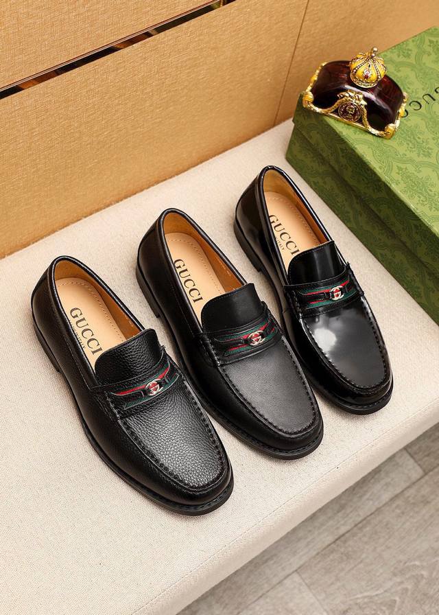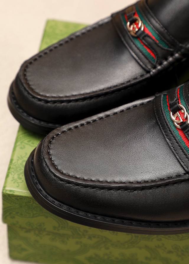 / 商品商标:Gucci 古驰 休闲皮鞋 正码码数: 38-44 45订制 商品材料:精选 进口头层小牛皮鞋面+原版五金扣,进口牛皮内里。强烈立体视觉效果,原版组合