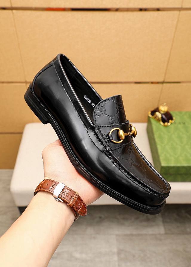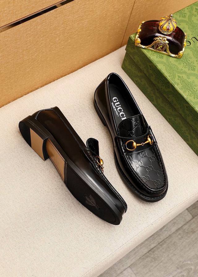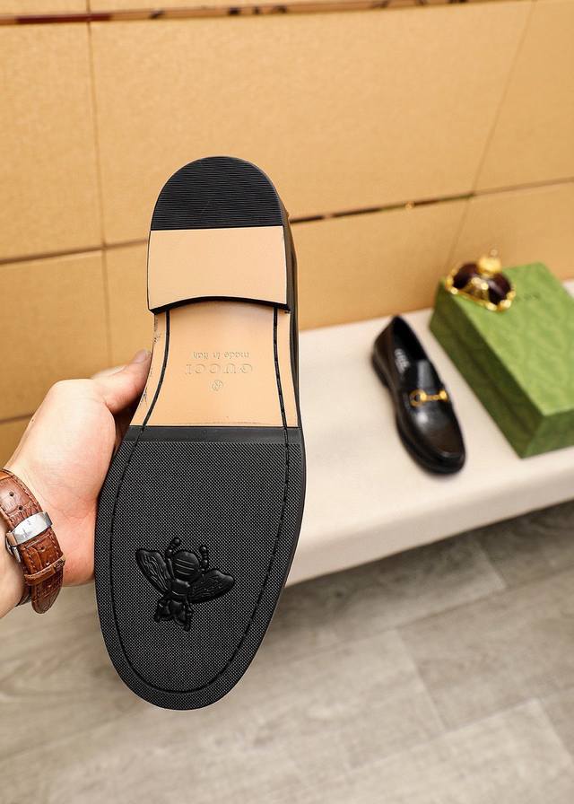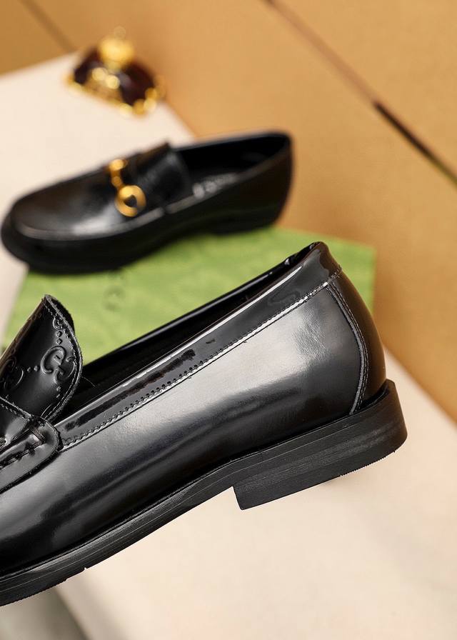 / 商品商标:Gucci 古驰 休闲皮鞋 正码码数: 38-44 45订制 商品材料:精选 进口头层开边珠牛皮鞋面+原版五金扣,进口牛皮内里。强烈立体视觉效果,原版