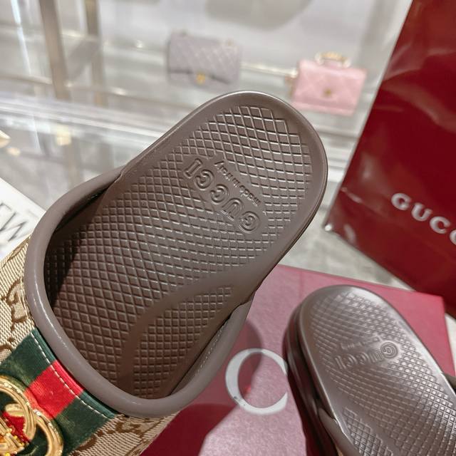 / 夏季新款男款一脚蹬凉拖鞋该单品的灵感源自意大利海岸的夏季精神和海滩俱乐部,是 Gucci Lido 的一部分。早秋系列以现代方式重新诠释品牌的标志性元素和精致图