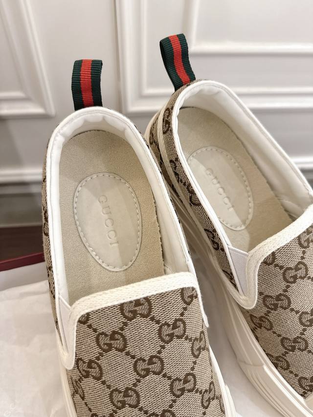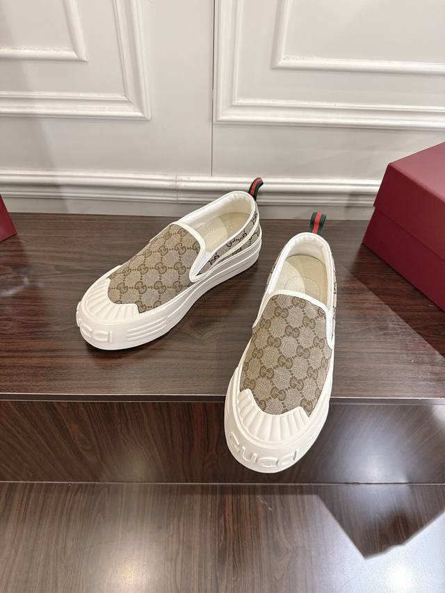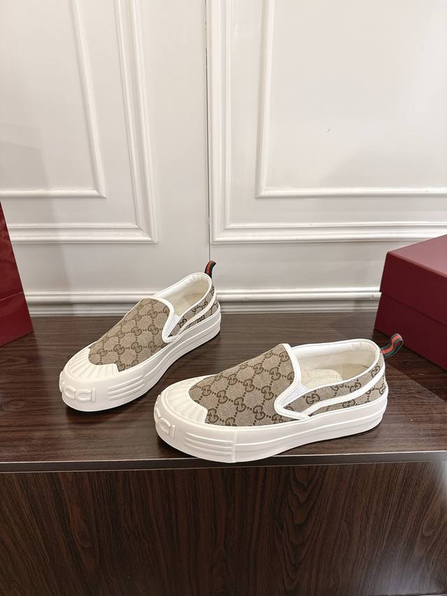 女款 Gucci Gg帆布鞋 小白鞋 休闲鞋这款运动鞋以标志性Gg帆布匠心打造,将典藏设计与现代美学巧妙糅于一体。大胆前卫的廓形配以“Gucci”印花压纹橡胶鞋底,缔就个性十足且穿着舒适的亮眼单品。原版定制经典Gg帆布 码数35 40 女41 定做不退换