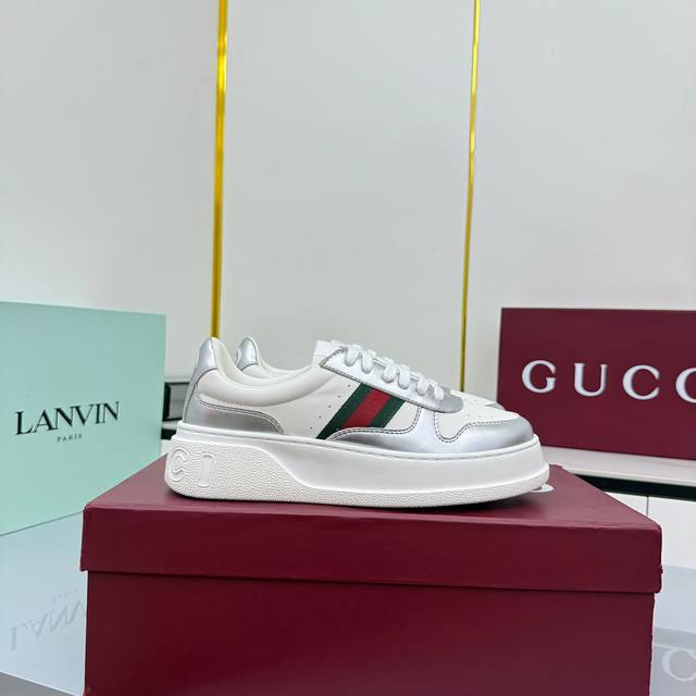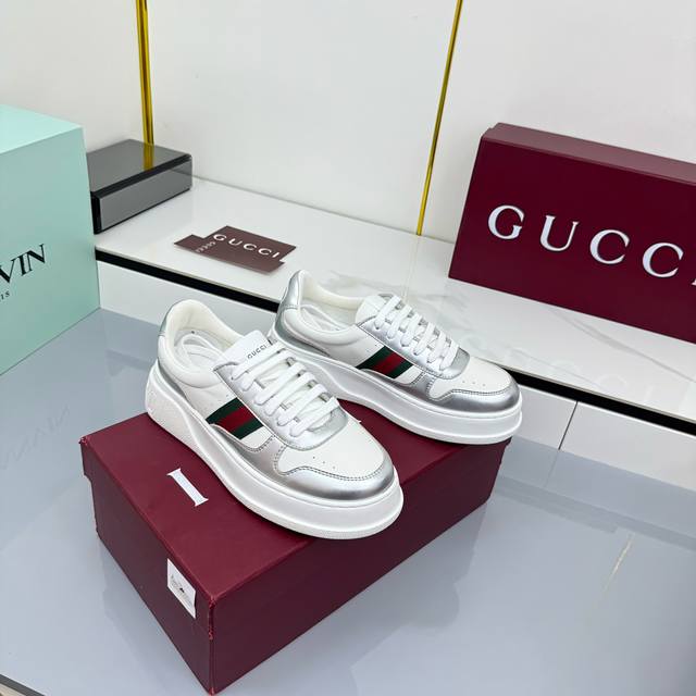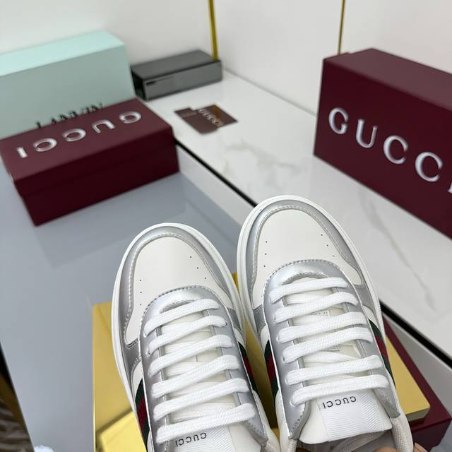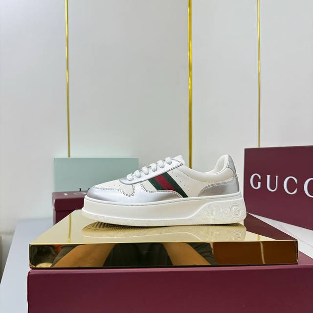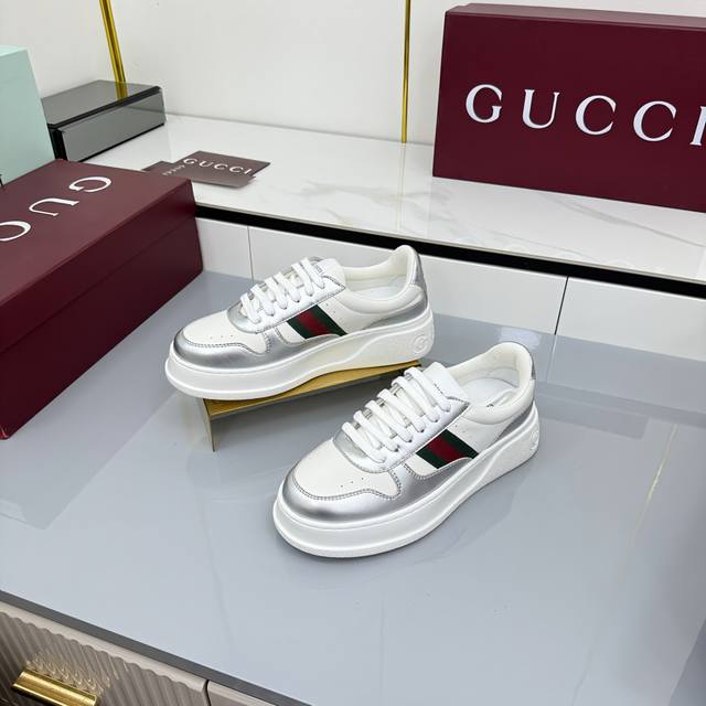 女 顶级版本,普通版本报单备注 #古驰系列运动鞋采用创新缝线工艺制作,打造如水般的流 动质感。皮革设计搭配三维立体互扣式双G皮革贴饰和Gucci字母 金属配件,