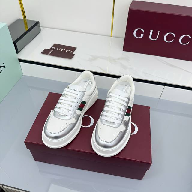 / 女 顶级版本,普通版本报单备注 #古驰系列运动鞋采用创新缝线工艺制作,打造如水般的流 动质感。皮革设计搭配三维立体互扣式双G皮革贴饰和Gucci字母 金属配件,