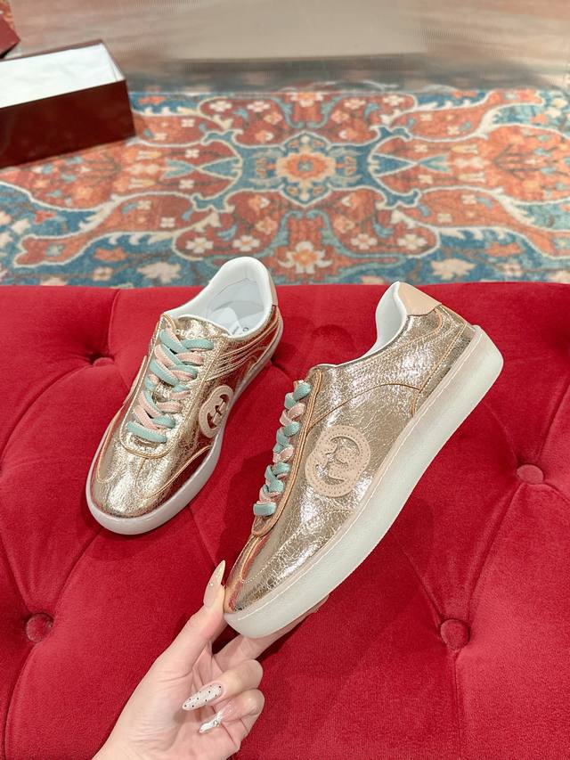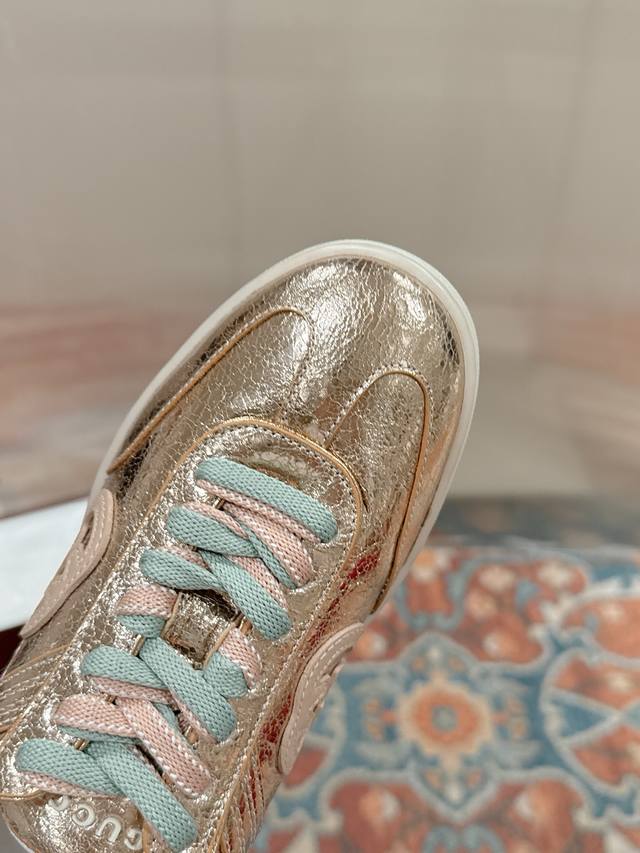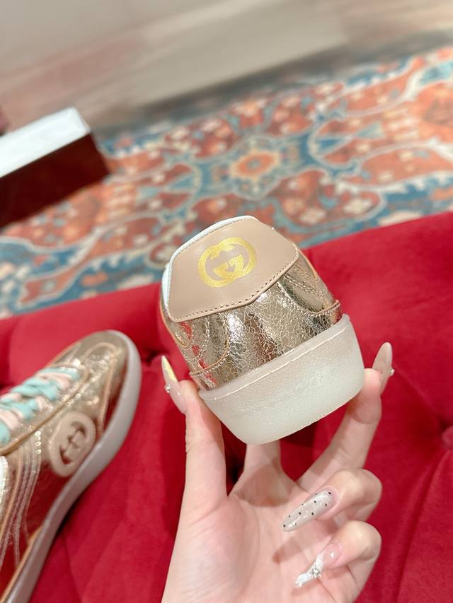 / 女 Gucci 最新款 阿甘鞋 德训鞋 休闲鞋 复古时尚 简约高级 随意搭配 上脚非常轻便舒适鞋面原版牛皮面 网面拼接 羊皮内里 最新开模原版大底码数:女35-
