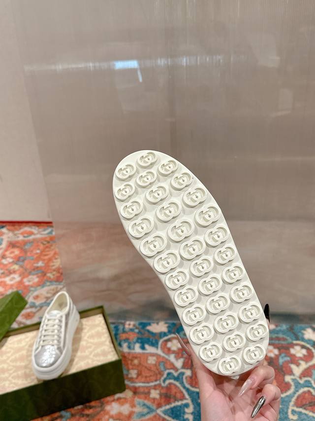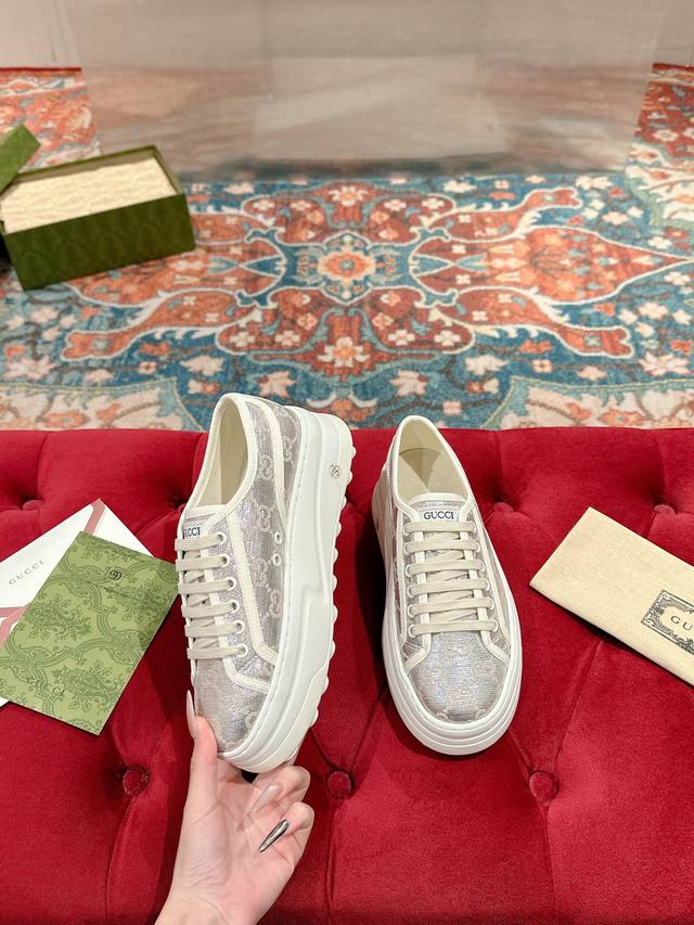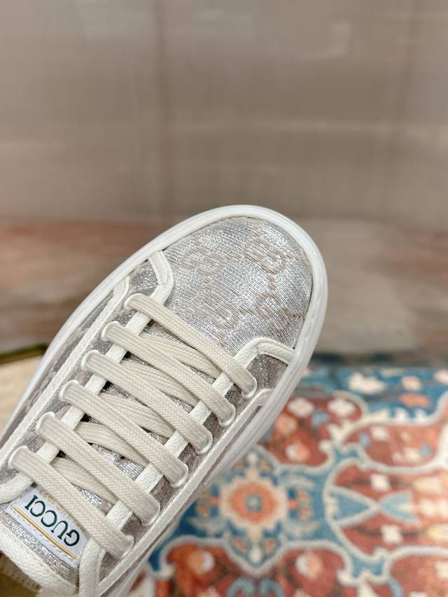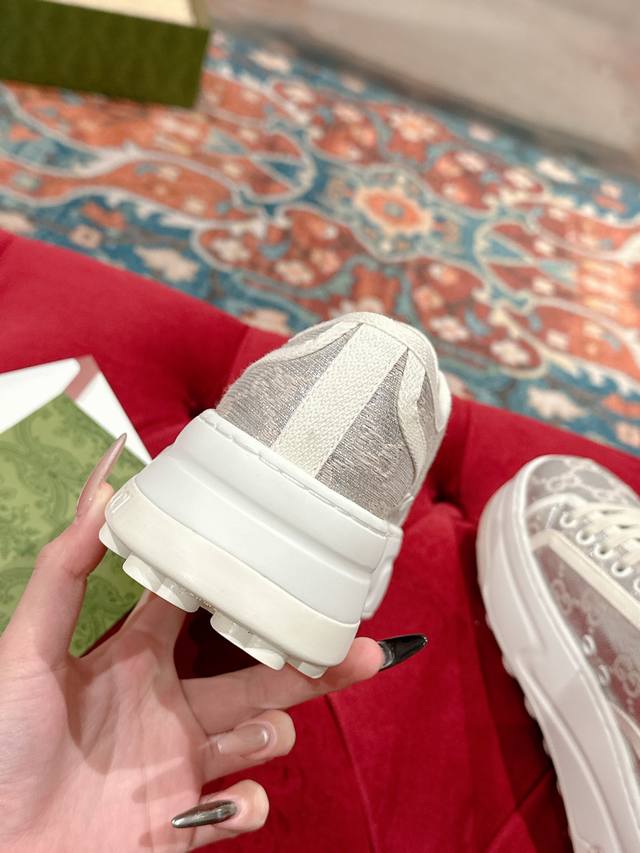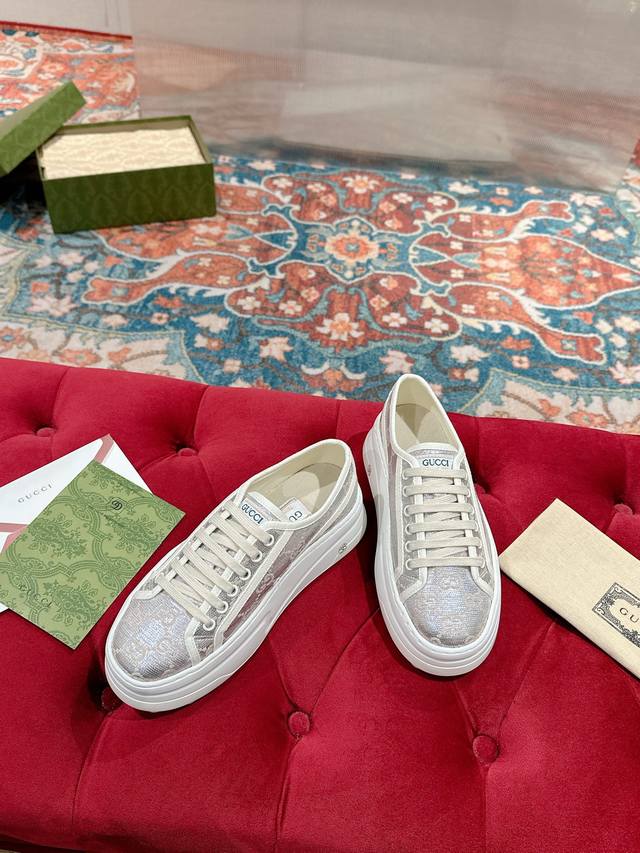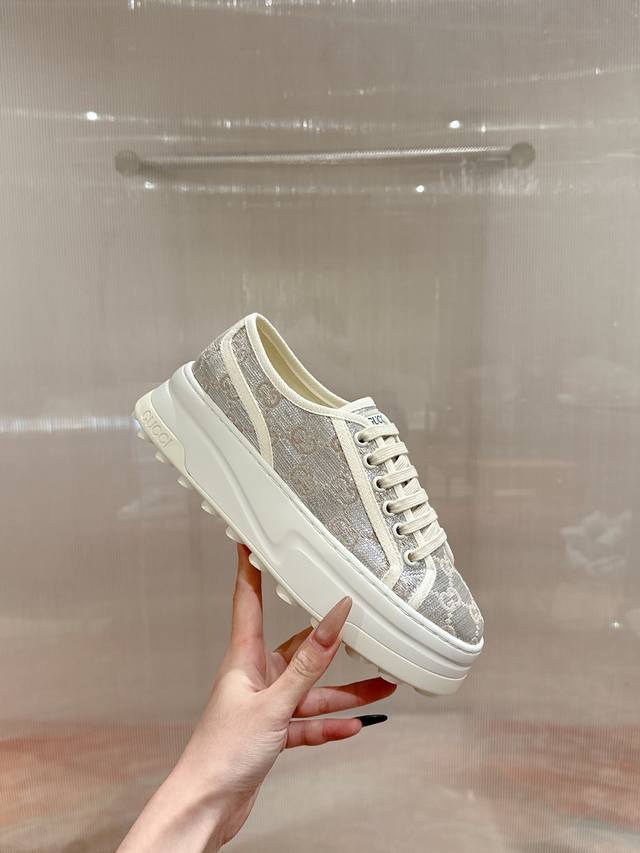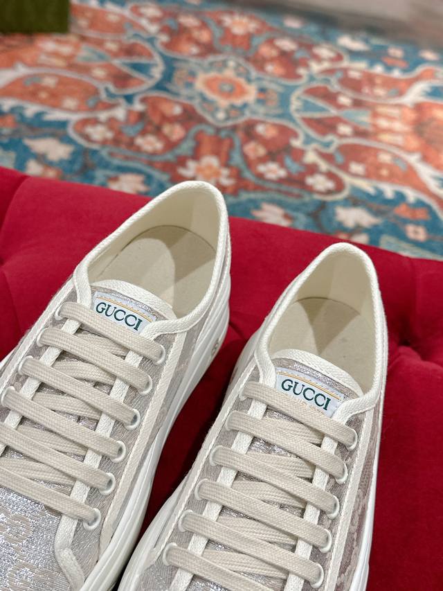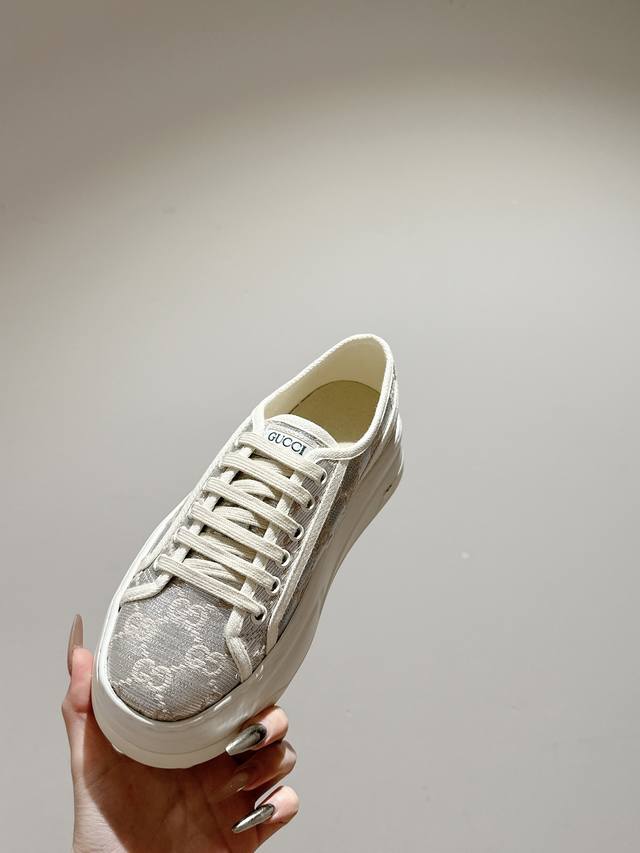 / 女p 男p 顶级版本 GuccⅠ 年最新爆款运动鞋,这件亮眼吸睛的单品从网球世界中汲取创作灵感。这款运动鞋采用同色调米色和乌木色经典Gg帆布制成,厚实鞋底和撞色
