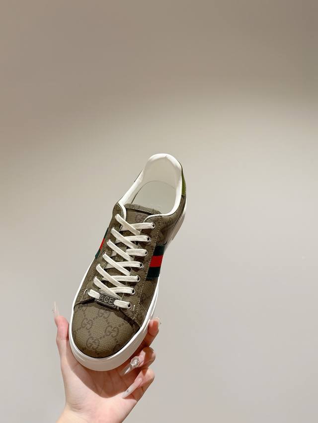 女p 男p Ddd Gucci古驰最新Ace系列 小蜜蜂 小白鞋 情侣款 休闲 运动鞋 Ddd 原版购入开发 做货 古驰自问世以来,Ace系列运动鞋延续品牌叙事,匠心成就主打单品。全新系列呈现特色低帮设计,搭配别致细节,焕新诠释运动鞋版型。系带固定处饰以“Ace”金属标牌,加厚构造精致塑就挺括鞋型。Gucci经典红绿条纹织带令整款设计更添魅力。 Ddd 面料:原版进口头层牛皮 Ddd 内里:原版定制柔软羊皮 Ddd 底厚:3Cm Ddd Size:女35-40男39-44 女40 男45 定制 不退换 D