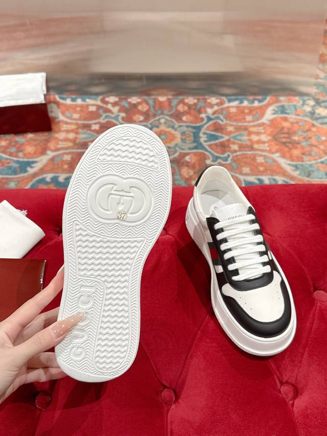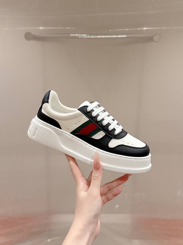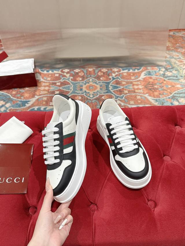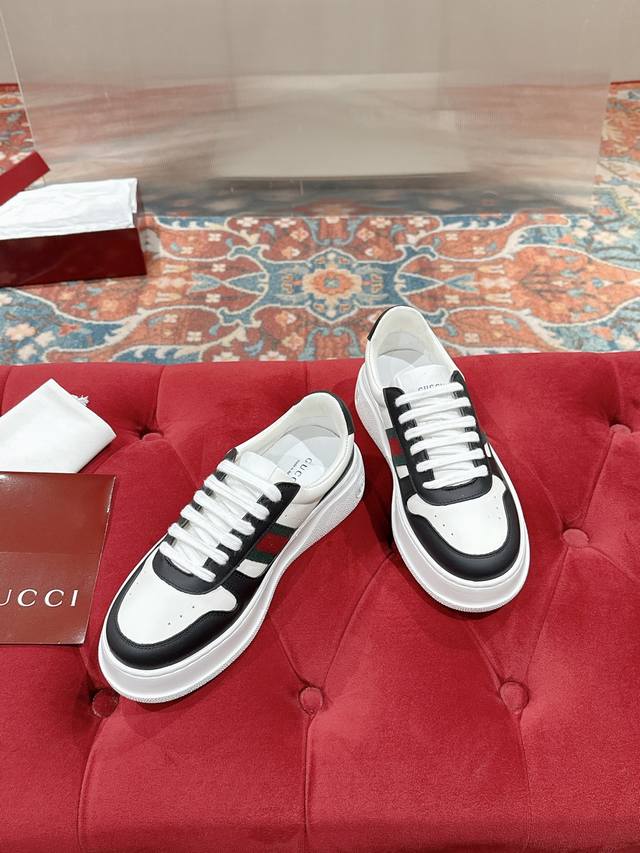 女p 男p Ddd Gucci * 厚底情侣款运动鞋 Ddd 这款运动鞋采用厚底结构 巧妙运用廓形设计 配色和材质三重元素 经典款元素演绎出品牌所推崇的运动与休闲相融合的设计理念 厚底设计令运动鞋流露出复古感 最重要的是鞋子非常轻盈 鞋底也非常柔软上脚非常舒服 四季都可以穿 秋冬穿更是氛围感满满 Ddd 面料:原版定制牛皮 Ddd 大底:橡胶大底 Ddd 跟高:约5Cm Ddd Size:女35-40 男39-44 女40 男45 定制不退换 DDD