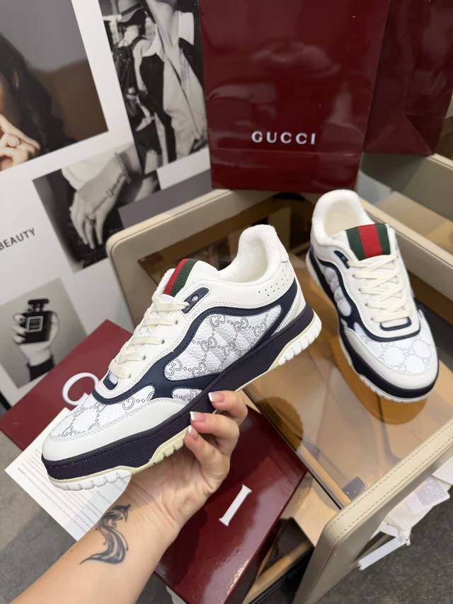 实价 Gucci 新款运动板鞋,秋冬最新限定配色,全新升级 整体更轻更软 毛巾内里吸汗舒适度Gg印花 标志性红绿织带,不管怎样搭配都是街头焦点 女码35-40,男码39-45 DDD