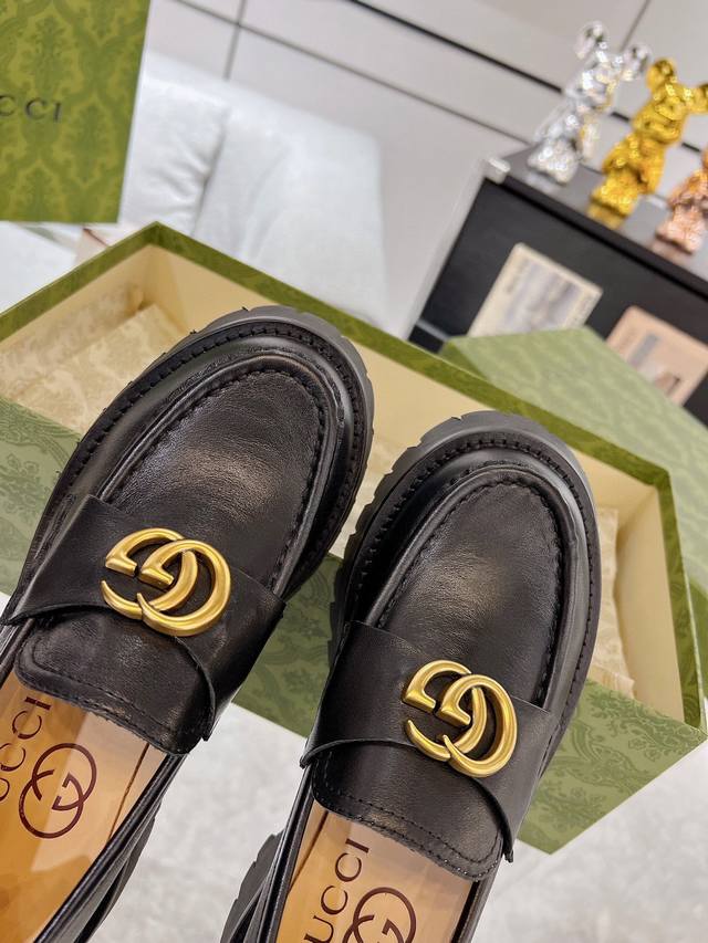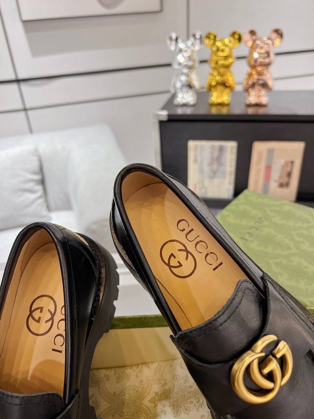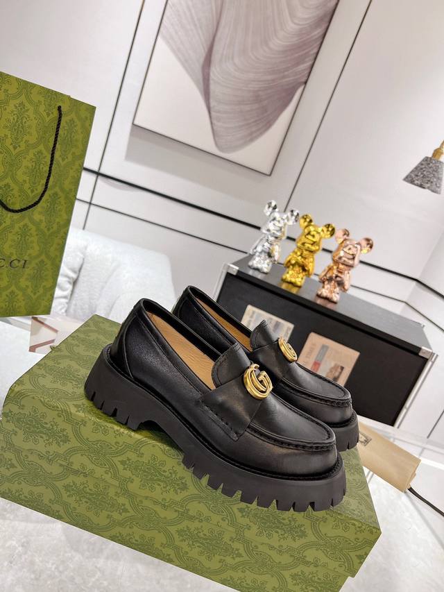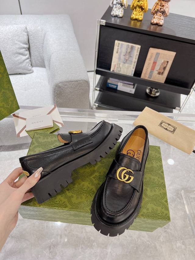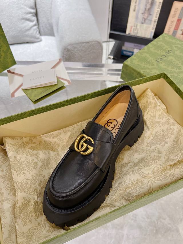 工厂p价 Gucci 双Gg沟纹厚底乐福鞋 松糕鞋 秀场大爆款 专柜购买原版一比一打造 所有细节 材料 全部跟你在专柜买到的都一样 牛皮面料 码数:35-40#