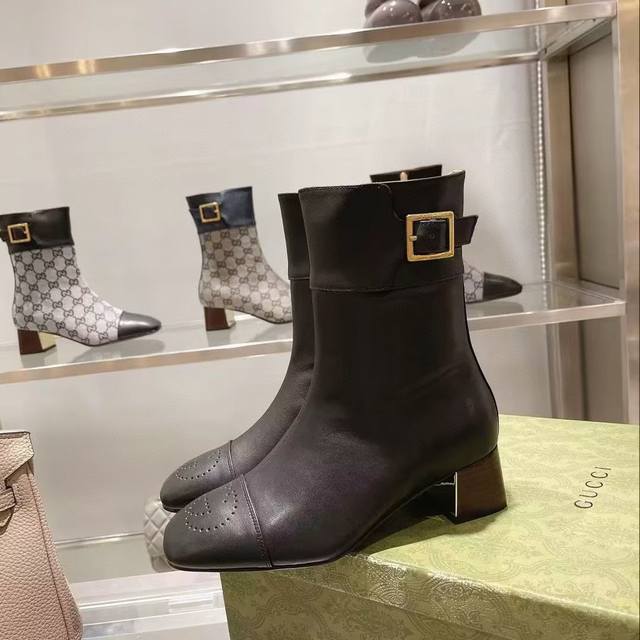 工厂P价 Gucci 古奇 时尚大爆款 巧妙运用方形鞋头等设计时尚风范 DDD 面料:刺绣拼接粒面牛皮 进口混种羊皮 DDD 内里:垫脚 进口羊皮 DDD 跟高