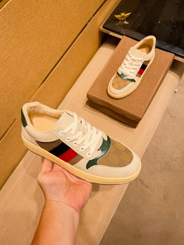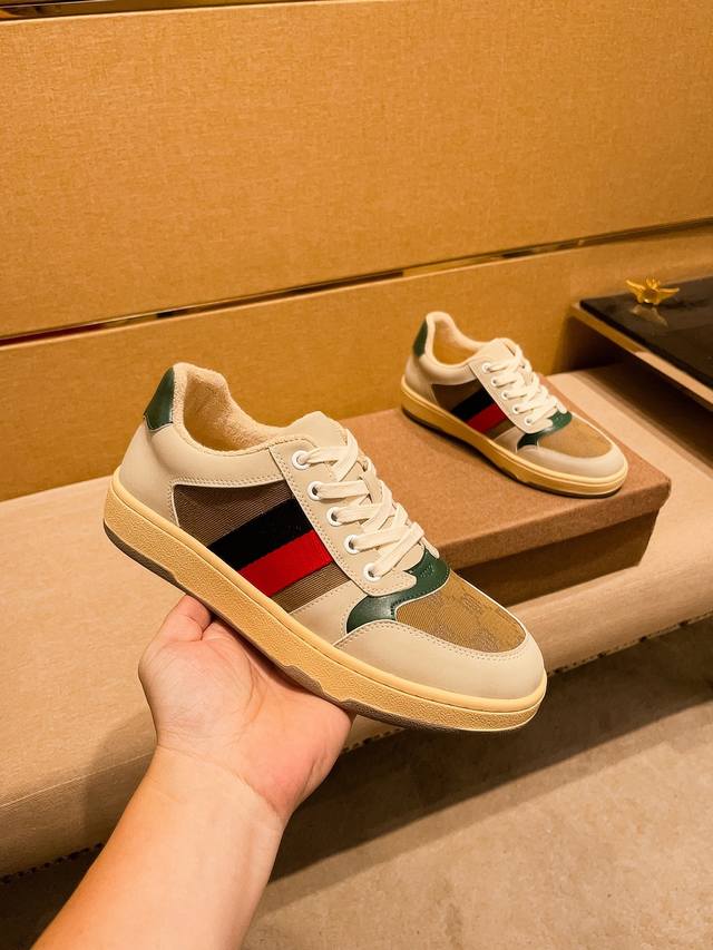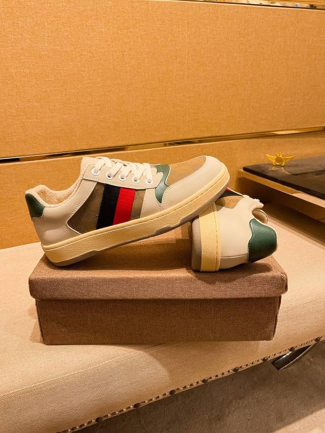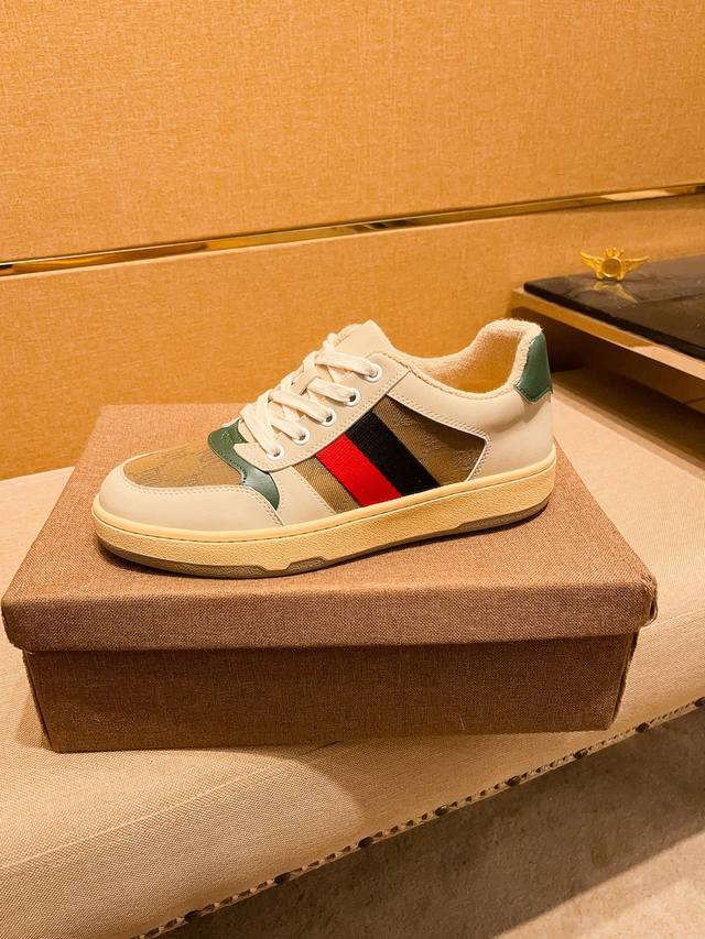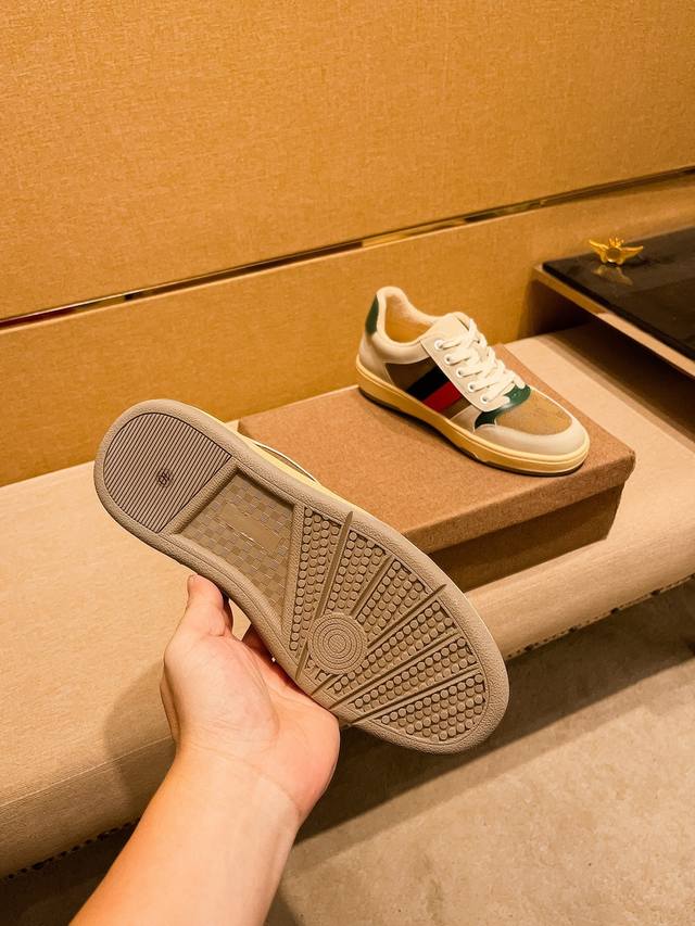 440#限男款 古驰最新饼干鞋 火爆厚底小白鞋 原版拆分完美复刻 各种经典时尚碰撞 复古情怀 十分高雅 超级百搭 轻盈厚底...