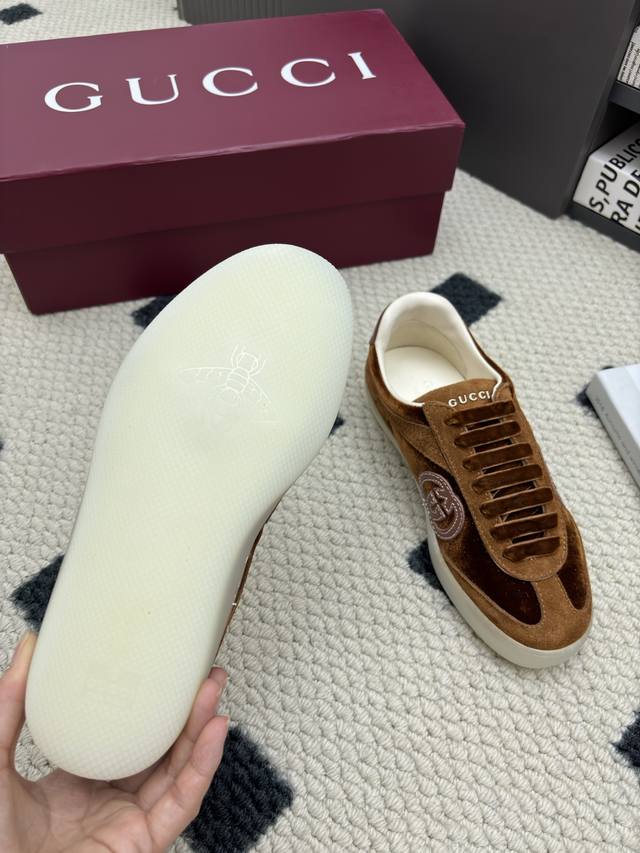 / 情侣款 2025新款Gucci 德训鞋原版一比一打造舒适度、包裹性都比较好。个性十足,很好驾驭各种风格衣服搭配。 面料:牛皮、牛反绒、 内里:牛皮。 大底:原版