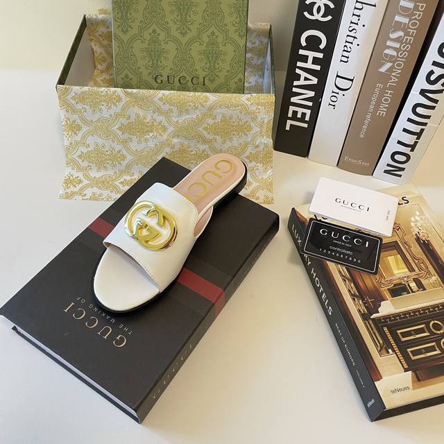 橙子出厂价p gucci 古驰 夏季新款 金属扣饰平底拖鞋 休闲凉拖 码数 35-42