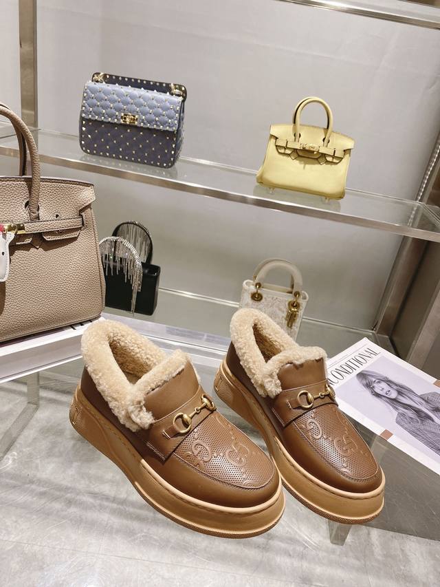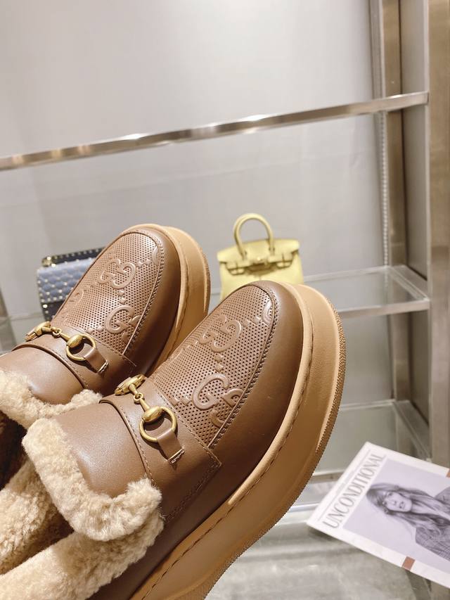 爆款新加全皮颜色 DDD Gucci巴黎时装周中国25年美丽奴羊皮毛一体浅口雪地靴,提花面料Logo头层牛皮澳洲进口羊毛内里, DDD Gucci 这款雪地靴结合了品牌两大标志性元素 金色马衔扣五金和 V 字形马特拉塞绗缝。它采用混纺羊毛毡于意大利制成,以柔软皮革饰边,米黄色羊毛皮全衬里让双足保持温暖。橡胶厚底上压印有 Logo,可提供出色抓地力。 DDD 鞋跟高约 3 厘米 DDD 金典色皮革 小牛皮 ,米黄色羊毛皮内里, DDD 套穿款 DDD 意大利制造 DDD 符合标准尺码,请选择平时所穿尺码 D