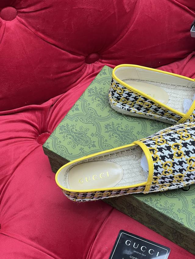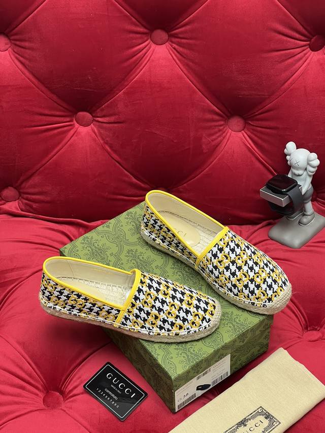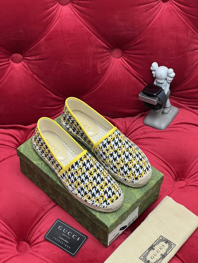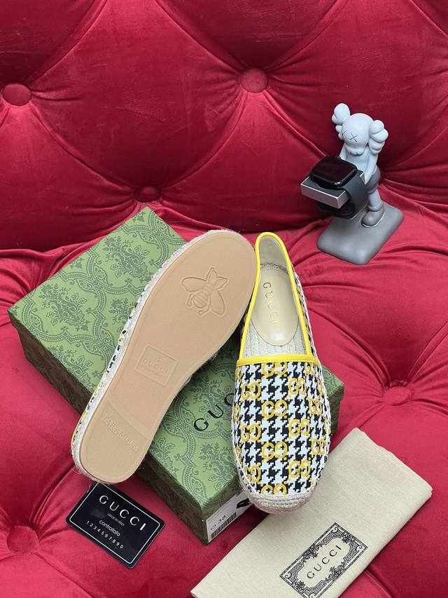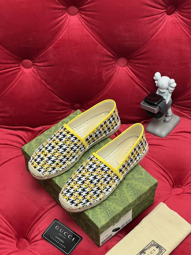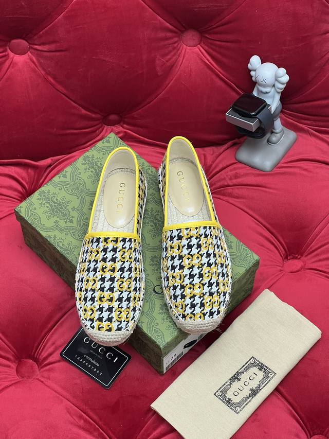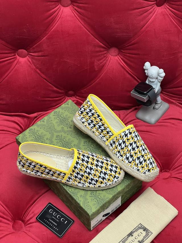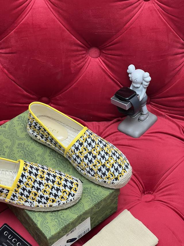 独家实拍 高版本 Ss新色早春Gucc*古奇经典Logo标识帆布渔夫鞋 草编鞋采用双G进口布料 品牌双G植绒字母交叉织图案颜色在每一季都会焕然演 通过更多新鲜瞩