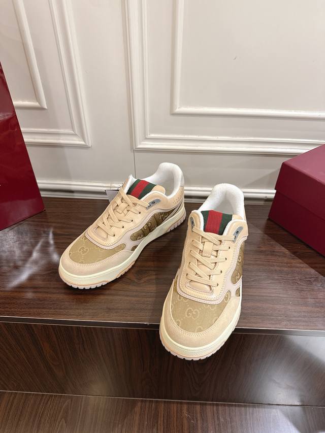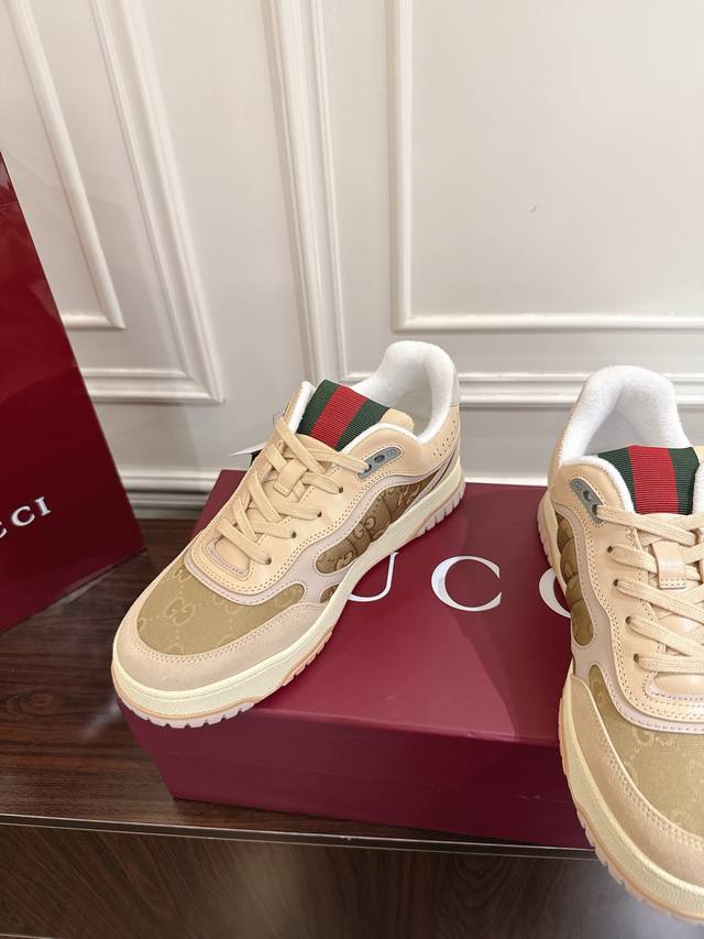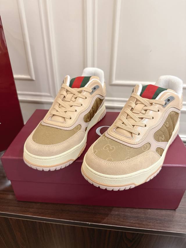 男款 新配色Gucci Re-Web系列情侣款运动鞋 小白鞋 Re-Web是由品牌创意总监Sabato De Sarno倾心设计的首个运动鞋系列,以现代版型大胆