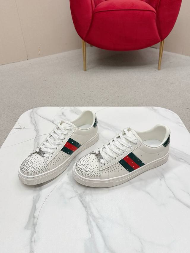 男款 Ddd Gucc* 最新Ace系列饰织带运动鞋 Ddd 自问世以来,Ace系列运动鞋延续品牌叙事,匠心成就主打单品。全新系列呈现特色低帮设计,搭配别致细节,焕新诠释运 Ddd 动鞋版型。系带固定处饰以“Ace”金属标牌,加厚构造精致塑 Ddd 就挺括鞋型。Gucc*经典红绿条纹织带令整款设计更添魅力。 DDD 白色皮革 Ddd 绿色皮革细节 “Ace”金属标牌 Ddd 橡胶鞋底 Ddd 额外附赠一副鞋带 Ddd 系带固定 Ddd 低跟 Ddd 3厘米高 Ddd 这款产品沿袭Gucc* Ace系列的质