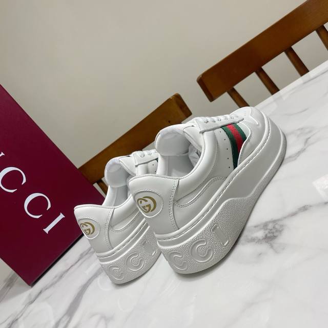 / 男款10 Gucci 情侣款厚底小白鞋,白鹿同款,小红书刷爆圈了,轻奢复古,厚底增高,上脚瞬间变大长腿,舒适百搭 鞋面为丝绸牛皮金属皮油边封口工艺,内里为透气网
