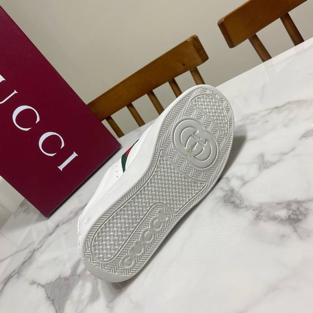 Gucc*Ace系列新款小白鞋 升级环保牛皮柔软舒适...