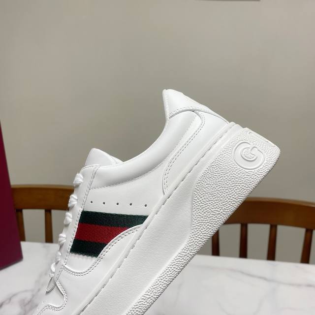 男款10 Gucci 情侣款厚底小白鞋,白鹿同款,小红书刷爆圈了,轻奢复古,厚底增高,上脚瞬间变大长腿,舒适百搭 鞋面为丝绸牛皮金属皮油边封口工艺,内里为透气网