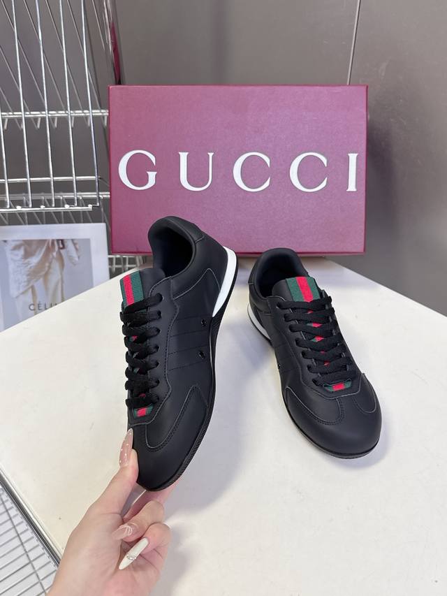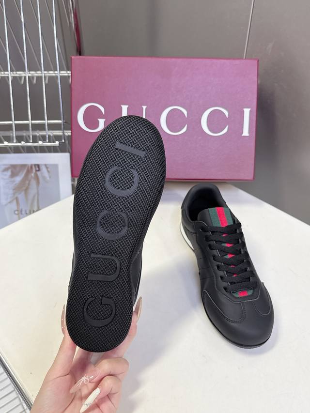 男装10 Gucci古驰Shift系列情侣款运动鞋系带休闲德训鞋 超多明星网红种草 Gucci Shift系列全新上市,轻盈设计焕新诠释运动风尚。利落廓形更添自在本色,行动间彰显精致质感。织带细节宛如一道延绵不绝的饰带贯穿于整个设计,侧边缝线细节增添点睛之笔 鞋面:水洗效果牛皮定制麂皮 内里垫脚:羊皮鞋底:开模双色Tpu大底Size: 女35-40 男39-44