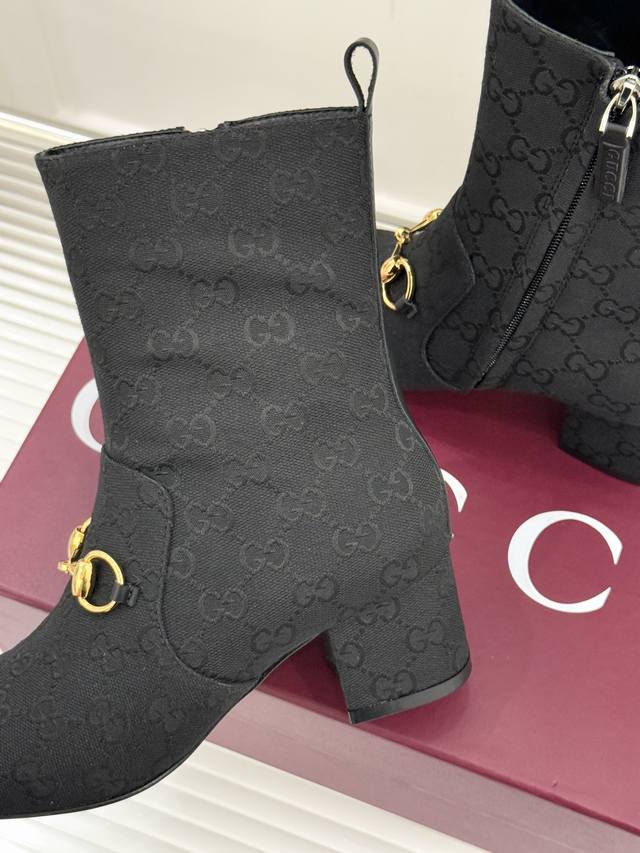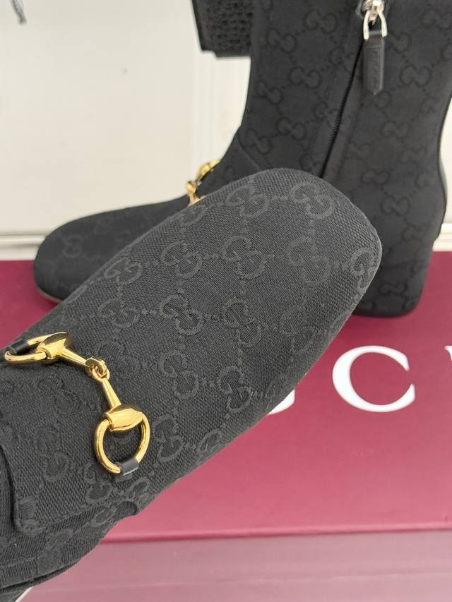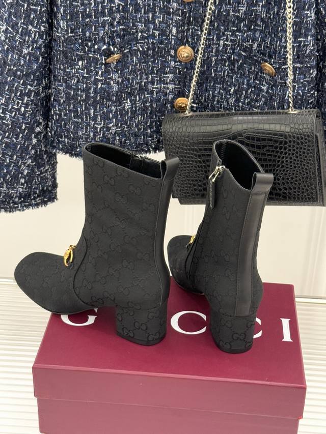 皮面 布面 DDD Gucci 古驰25Wf新品马衔扣圆头 DDD 粗跟短靴 DDD 这款短靴以标志性马衔扣贯穿设计 DDD 古银镀层雕琢出时光质感 DDD 成为鞋身最具辨识度的奢华符号 DDD 圆头剪裁温柔包容双脚 DDD 粗跟高度精准平衡优雅与实用 DDD 细腻车缝线勾勒复古轮廓 DDD 靴筒贴合脚踝的利落剪裁 DDD 既能呼应西装的干练气场 DDD 也能搭配裙装的浪漫氛围。 DDD 经典美学与现代实穿主义碰撞 DDD 让复古马衔扣不再局限于怀旧 DDD 化作日常穿搭中的点睛之笔 DDD 无论是通勤赶
