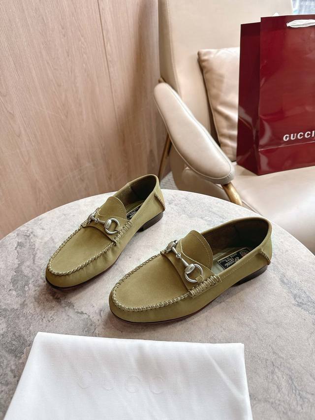 / 这款乐福鞋以柔软精致的绒面材质匠心打造,为品牌经典鞋款再添亮眼力作。这种轻质材料可贴合双足灵活弯折,带来上乘舒适脚感。巧妙融入经典马衔扣配件,向Gucci积淀深