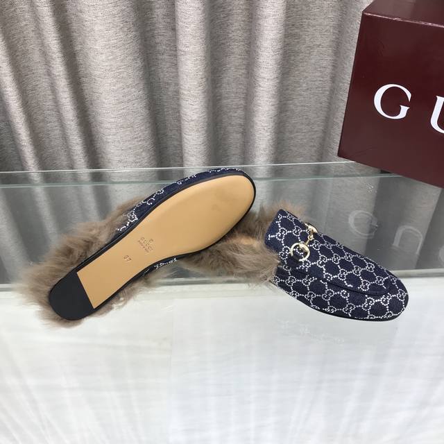 钻面 2025早秋新配色Gucci 古驰Princetown经典款羊毛拖鞋系列最新版面双G绒面穆勒鞋马衔扣平底半拖鞋托斯卡纳毛拖鞋 作为设计传承的杰出代表,新系列饰马衔扣乐福鞋,生动彰显经典优雅格调。这款鞋履采用品牌标志性字母G G交织图案压纹皮,成就隽永经典。这款鞋履材质柔软,廊形精致流畅,彰显日常优雅风范! 鞋面:定制双G绒面 牛皮 内里垫脚:托斯卡纳羊毛 鞋底:意大利真皮大底 码数:35-39 34.40.41.42定做不退换
