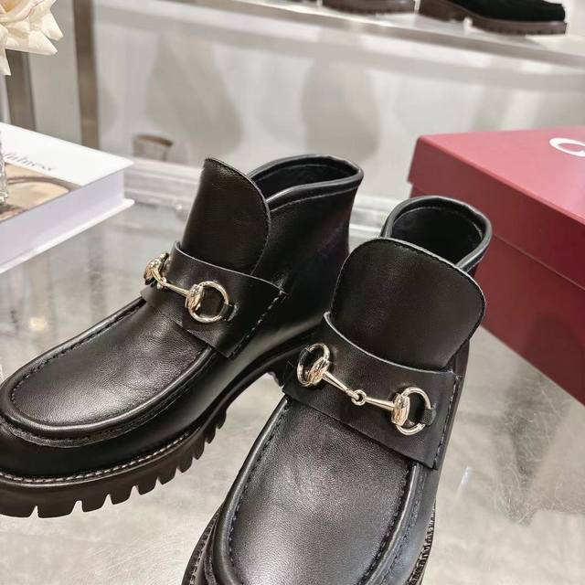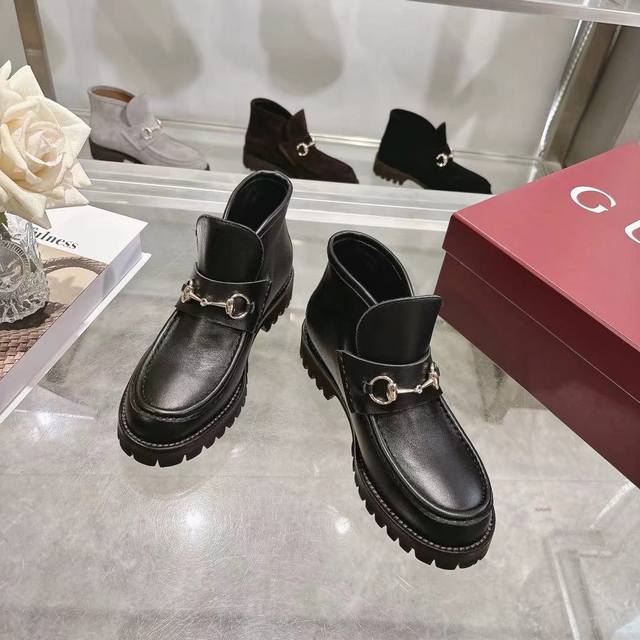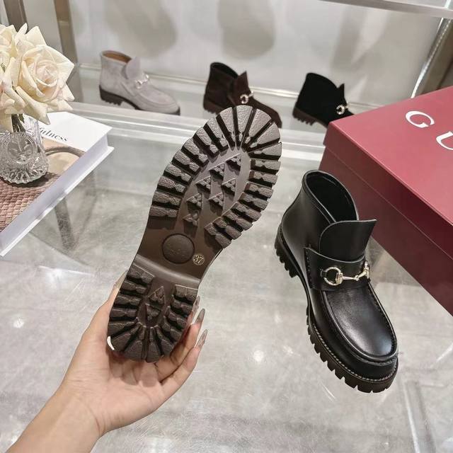 / 长期有货 4寸女靴 Gucci 古奇 时尚大爆款 巧妙运用圆形鞋头等设计时尚风范 面料:进口小牛牛猄皮 内里:垫脚 进口羊皮 原板一比大底生产 码数:35 42