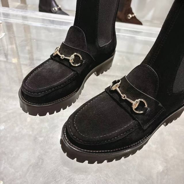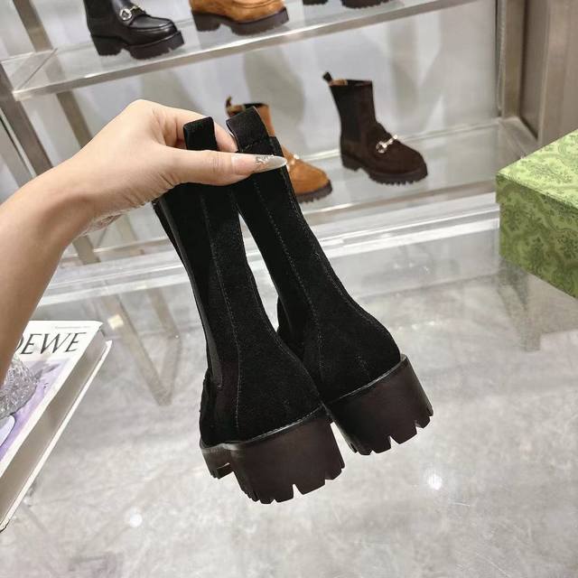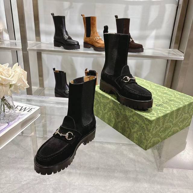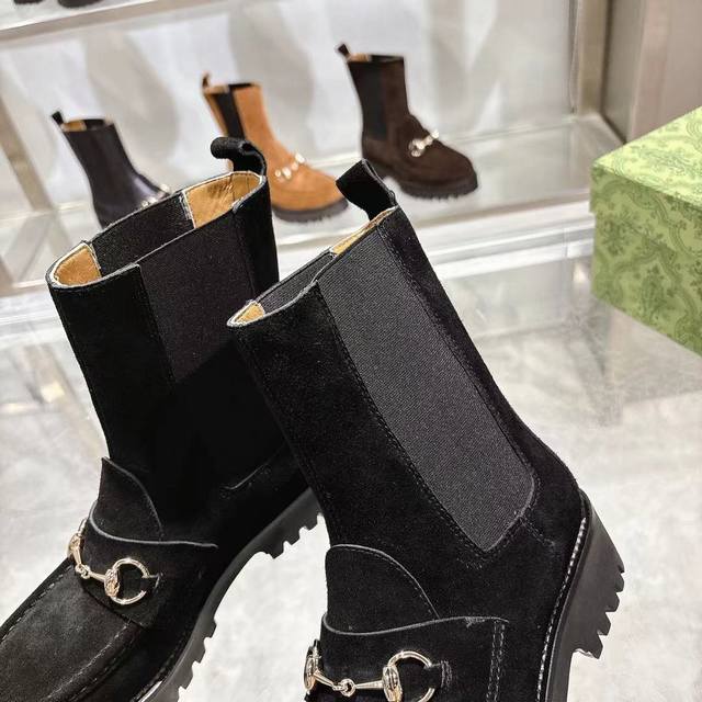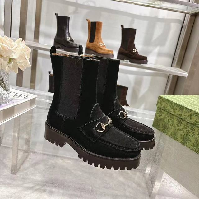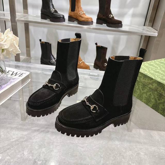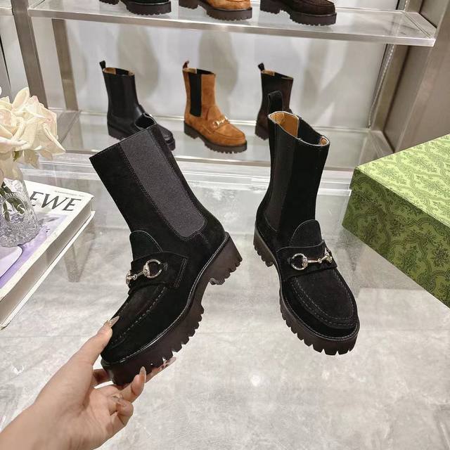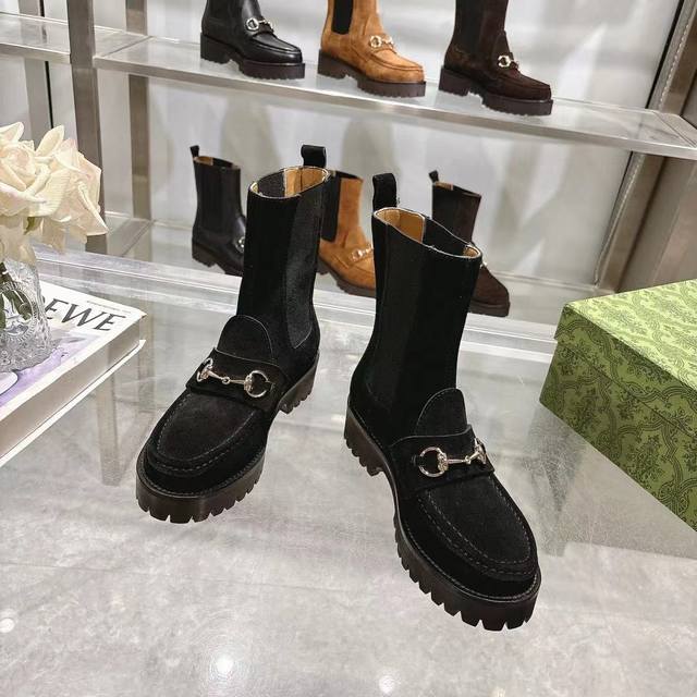 长期有货 7寸女靴 Gucci 古奇 时尚大爆款 巧妙运用圆形鞋头等设计时尚风范 面料:进口小牛牛猄皮 内里:垫脚 进口羊皮 意大利真皮大底一比一生产 码数:3